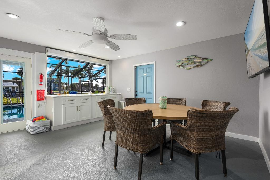 Indulgent Amenities -Featuring over 100 amenities we have something for everyone in the family - Waterfront Access: Step out to your private oasis with direct access to the Gulf, ideal for boating, fishing, and water sports. - Heated Saltwater Pool: Relax in the inviting pool nestled within a screened lanai, perfect for year-round enjoyment. - Expansive Outdoor Spaces: Revel in the lush tropical yard featuring games, a cozy fire pit with swings for family fun.