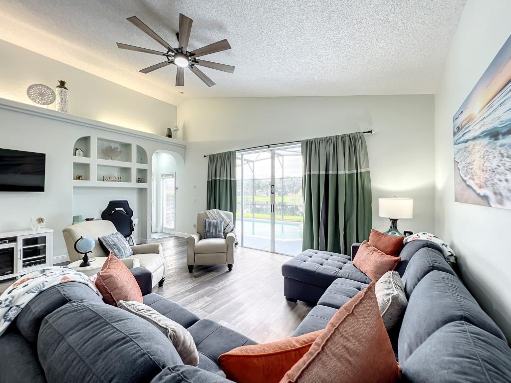Glenbrook Lake Home Pool Villa, Beautiful Villa rental in Clermont has 4 bedrooms, 3.5 bathrooms, 10 sleeps, 1 minimum stay Villa for rent in Clermont Florida with the amenities and near by attractions , Air Conditioning, Carbon monoxide detector, Children allowed, Communal Pool, Deck/Patio, Exterior lighting, Fire extinguisher, Fireplace, Free WiFi, Full Kitchen, Internet, Kitchen, Lake View, Linens Provided, Managed by Owner, Parking, Ping Pong Table, Pool Table, Smoke detector, Swimming pool, Towels Provided, Washing Machine, Water View, Waterfront, Wheelchair Accessible, Wireless Internet, Basic Soaps, Blender, Cable/Satellite TV, Ceiling Fans, Clothes Dryer, Coffee Maker , Dining Area, Dishes & Utensils, Dishwasher, DVD Player, First-aid kit, Freezer, Hair Dryer , Hangers, Iron & Board , Ironing Board, Kettle, Living Room, Microwave, Microwave/Air Fryer, Oven, Refrigerator, Shampoo, Stove, Television, Toaster, Washer/Dryer , Golf, Outlet shopping24checkin, Air Filter, Alarm System, Baby High Chair, Baby Travel Bed, Barbecue, Basketball Court, Board Games, Breakfast, Cddvdplayer, Childrens Books And Toys, Childrens Dinnerware, Cleaning With Dinfectants, Contactless Checkin, Cooking Basics, Crockery Cutlery, Deadbolt Lock, Desk, Desk Chair, Dining Table, Dhwasher, Emergency Exit, Enhanced Cleaning, Essentials, Fenced Pool, Free Street Parking, Gym, High Touch Surfaces Cleaning With Dinfectants, Hot Tub, Hot Water, Kitchen Land, Lake, Lake Access, Lake View, Lock On Bedroom, Office, Outdoor Lighting, Outdoor Play Area, Pack Nplay Travel Crib, Pool, Pool All Year, Pots Pans, Private Entrance, Room Darkening Shades, Safe Box, Single Level, Smart Home, Surveillance, Tenn, Toiletries, Ventilation Fan, Wardrobe, Washer, Wifi Speed100, Lake Front, Resort, Family Friendly, Laptop Friendly, Check In Option Instruction, Baking Sheet, Barbeque Utensils, Bidet, Cleaning Products, Conditioner, Extra Pillows And Blankets, Outdoor Seating, Rain Shower, Resort Access, Safe, Shower Gel, Wine Glasses, Bathtub