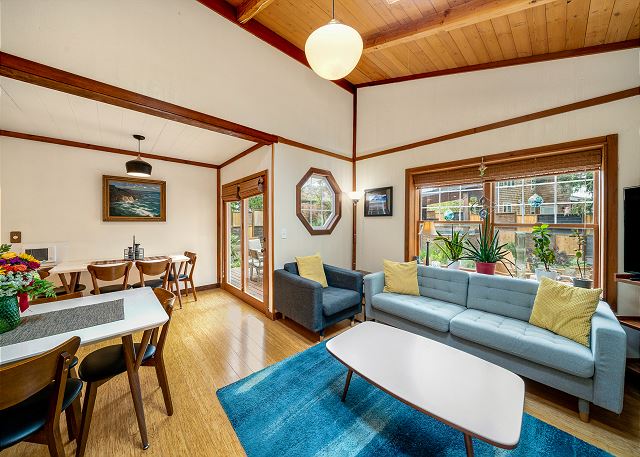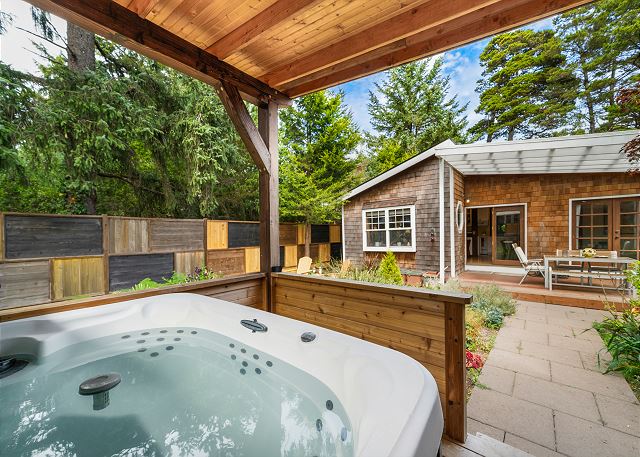 Secret Garden, Beautiful House rental in Manzanita has 3 bedrooms, 2 bathrooms, 8 sleeps, 2 minimum stay House for rent in Manzanita Oregon with the amenities and near by attractions , Carbon monoxide detector, Children Welcome, Deck/Patio, Fire extinguisher, Free WiFi, Heating, Hot Tub, Internet, Kitchen, Linens Provided, Non-Smoking, Parking, Pet Friendly, Smoke detector, Towels Provided, Washing Machine, Clothes Dryer, Coffee Maker , Dishes & Utensils, Dishwasher, First-aid kit, Hair Dryer , Living Room, Microwave, Outdoor Grill, Oven, Refrigerator, Stove, Toaster, Bird watching, Cycling, Fishing, fitness center, Golf, Hiking, Horseback riding, Surfing, Swimming, Whale watching, Wind-surfingking, queen, shower, toilet, tub, twin/ single, autumn foliage, forests, library, playground, restaurants, Smart TV, Fire pit, Shampoo & conditioner, Wifi, Pantry Items, Dining Table, Dishes & Utensils for Kids, beachcombing, scenic drives, sight seeing, walking, ATM/bank, groceries, massage therapist, medical services, Downtown, Near The Ocean, Lawn / Garden, Fenced Yard, Sauna, tennis, Minimum Age Limit for Renters, flexible, Outdoor lighting, Deadbolt lock on entryway, Smoke detectors, Enhanced cleaning practices, Clean with disinfectant, No-contact check-in and check-out, High touch surfaces cleaned with disinfectant, Towels and bedding washed in water that's at least 60sC/140sF