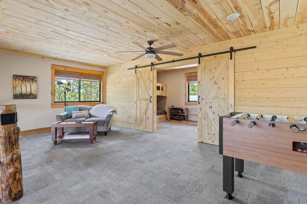 Gold Nugget Lodge Near Deadwood on 5 Wooded Acres!, Beautiful House rental in Lead has 3 bedrooms, 2 bathrooms, 12 sleeps, 1 minimum stay House for rent in Lead South Dakota with the amenities and near by attractions , Carbon monoxide detector, Fire extinguisher, Fireplace, Heating, Kitchen, Linens Provided, Parking, Towels Provided, Washing Machine, Wireless Internet, Ceiling Fans, Clothes Dryer, Coffee Maker , Dishes & Utensils, First-aid kit, Hair Dryer , Microwave, Outdoor Grill, Oven, Refrigerator, Stove, Toaster1 Dining-Room (Shared), 1 Kitchen (Shared), 1 Living room (Shared), 1 Playroom (Shared), 2 Bathroom (Shared), 2 Queen bed, 3 Bedroom (Shared), 4 Loft bed, Bathroom & Laundry, Essentials, Shared Balcony