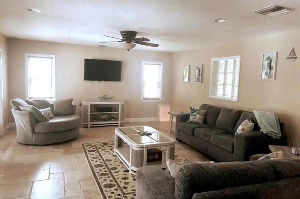 Enjoy AMI 16 People Private Pool/Spa & Guest House, Beautiful House rental in Bradenton has 6 bedrooms, 3 bathrooms, 16 sleeps, 4 minimum stay House for rent in Bradenton Florida with the amenities and near by attractions , Air Conditioning, Beach Chairs, Paper Towels, Free WiFi, Full Kitchen, Garage, Heated Pool, Heating, Hot Tub, Internet, Linens Provided, Managed by Property Manager, Parking, Pet Friendly, Private Pool, Towels Provided, Wireless Internet, Washing Machine, Kitchen, Children Welcome, Swimming pool, Fire extinguisher, Children allowed, No Smoking, No parties/events, Smoke detector, Exterior lighting, Outdoor Pool, Blender, Microwave, Cable/Satellite TV, Outdoor Grill, Television, Ceiling Fans, Freezer, Oven, Toaster, Coffee Maker , Hair Dryer , Refrigerator, Washer/Dryer , Dishes & Utensils, Iron & Board , Stove, Dishwasher, First-aid kit, Clothes Dryer, Dining Area, Basic Soaps, Toilet Paper, Living Room, Kettle, Hangers, Microwave/Air Fryer, Ironing Board, Swimming, Outlet shopping, Fishing, Theme parks, Bird watching, Surfing, Water sports, Ecotourism, Boating, Museums, Bay/sound, Health/beauty spa, Horseback riding, Paddle boating, Shopping, Basketball court, Golf, Hiking, Jet skiing, Kayaking, Parasailing, Scuba diving or snorkeling, Snorkeling, Hospital, fitness centerBath, Hot water, Extra pillows and blankets, Clothes storage: wardrobe and chest of drawers, Ethernet connection, HDTV with Amazon Prime Video, Netflix, Roku, Sound system with Bluetooth and aux, Board games, Central air conditioning, Security cameras on property, Smoke alarm, Electric cooker, Wine glasses, Baking sheet, Barbecue utensils, Dining table, Private entrance, Private back garden – Fully fenced, Fire pit, Outdoor furniture, Beach towels, umbrella, beach blanket, snorkelling gear, Self check-in, Smart lock