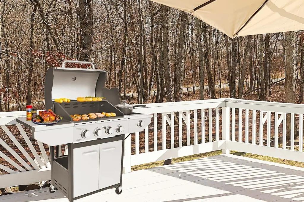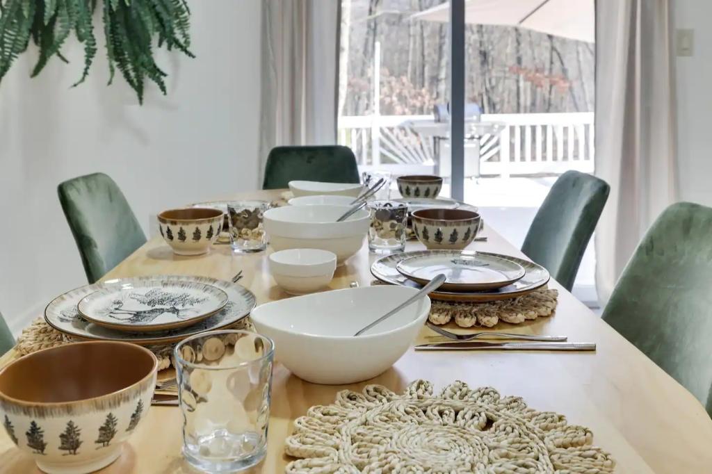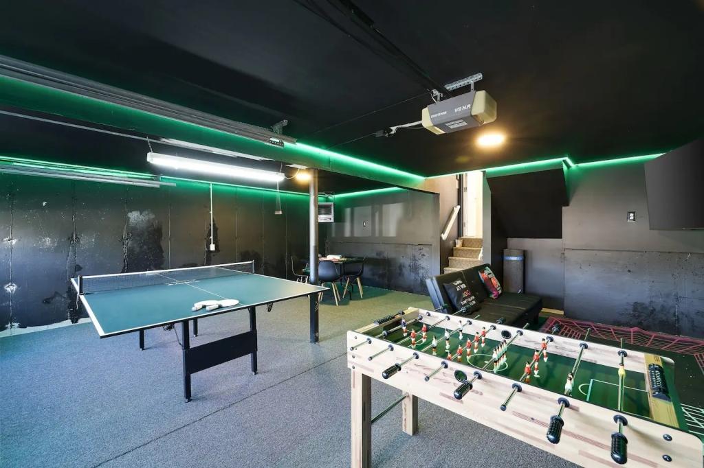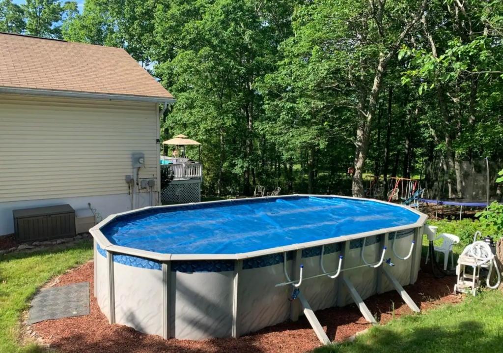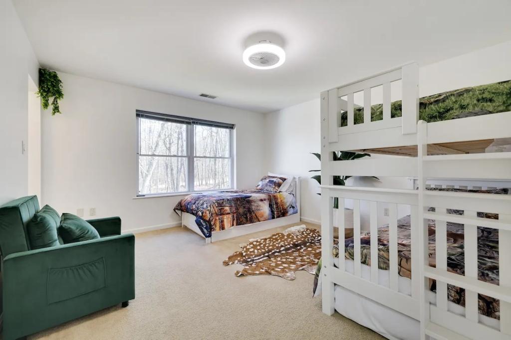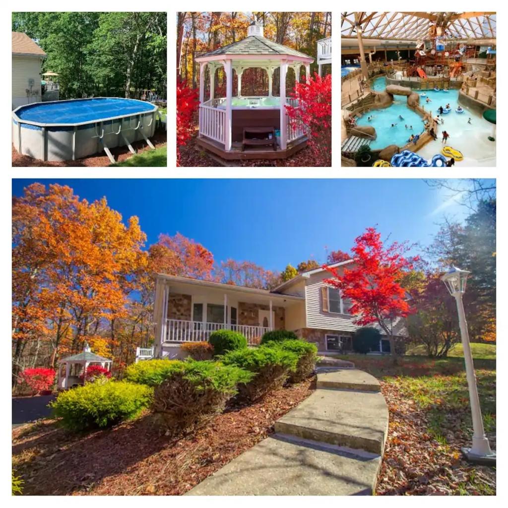 STUNNING LUXURY VILLA HOT TUB, POOL, GAME ROOM - Poconos Promise, Beautiful Villa rental in Pennsylvania has 3 bedrooms, 3 bathrooms, 12 sleeps, 1 minimum stay Villa for rent in Pennsylvania United States of America with the amenities and near by attractions , Air Conditioning, Carbon monoxide detector, Fire extinguisher, Fireplace, Game Room, Heating, Hot Tub, Internet, Linens Provided, Outdoor Pool, Parking, Ping Pong Table, Pool Table, Smoke detector, Towels Provided, Wireless Internet, Basic Soaps, Blender, Cable/Satellite TV, Ceiling Fans, Coffee Maker , Dishes & Utensils, Dishwasher, Hair Dryer , Hangers, Ice Maker, Iron & Board , Ironing Board, Microwave, Outdoor Grill, Oven, Refrigerator, Shampoo, Stove, Television, Toaster, Toilet Paper, Washer/Dryer , Ice skating, Mountain climbing, Rafting, Ski lift privileges, Ski privileges optional, Skiing, Snowboarding, Water sports, Water tubing, ZooBathtub, conditioner, hot water, shower gel, extra pillows and blankets, room-darkening shades, clothing storage: wardrobe and closet, Foosball, board games, convertible couch, heating by NEST, 85" Smart TV with Amazon Prime Video, Netflix, Dedicated workspace with desk and chair, Crib, high-chair, toys, board games, Fire pit with seating for 10, large deck with outdoor furniture and barbeque grill, Outdoor security cameras, Self check-in using smart lock, Gas grill, bamboo skewers/iron skewers, all barbeque utensils