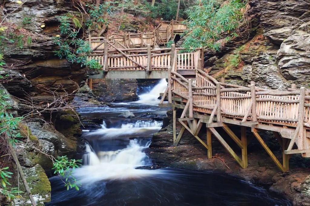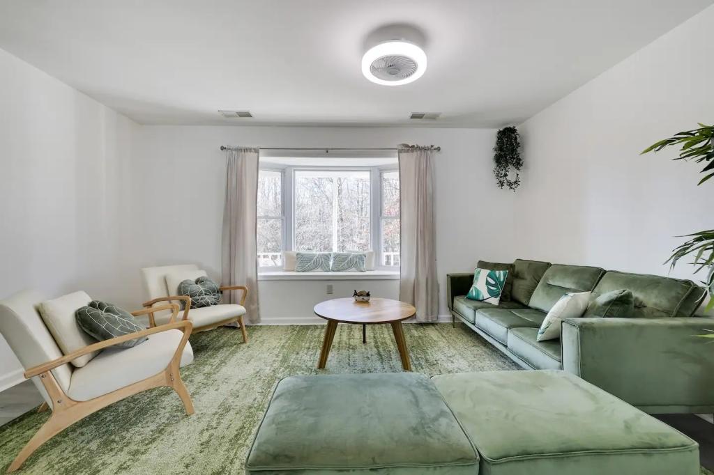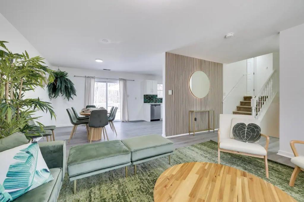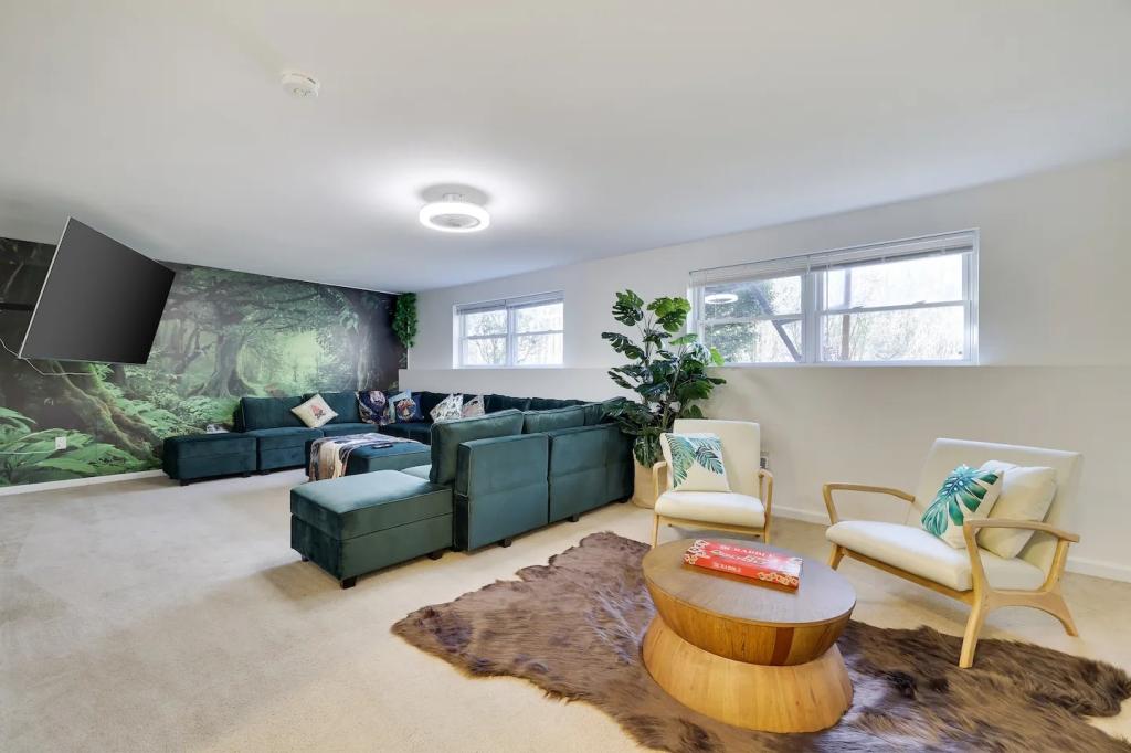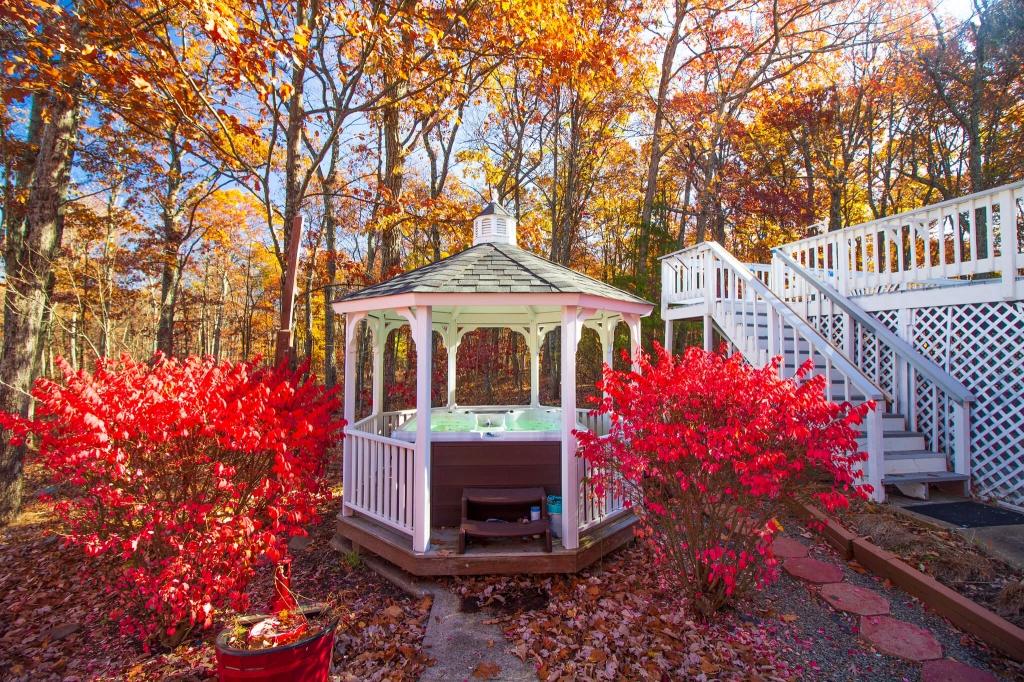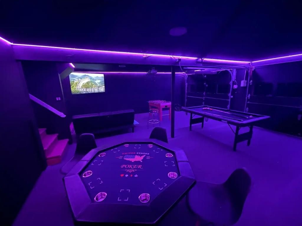 STUNNING LUXURY VILLA HOT TUB, POOL, GAME ROOM - Poconos Promise, Beautiful Villa rental in Pennsylvania has 3 bedrooms, 3 bathrooms, 12 sleeps, 1 minimum stay Villa for rent in Pennsylvania United States of America with the amenities and near by attractions , Air Conditioning, Carbon monoxide detector, Fire extinguisher, Fireplace, Game Room, Heating, Hot Tub, Internet, Linens Provided, Outdoor Pool, Parking, Ping Pong Table, Pool Table, Smoke detector, Towels Provided, Wireless Internet, Basic Soaps, Blender, Cable/Satellite TV, Ceiling Fans, Coffee Maker , Dishes & Utensils, Dishwasher, Hair Dryer , Hangers, Ice Maker, Iron & Board , Ironing Board, Microwave, Outdoor Grill, Oven, Refrigerator, Shampoo, Stove, Television, Toaster, Toilet Paper, Washer/Dryer , Ice skating, Mountain climbing, Rafting, Ski lift privileges, Ski privileges optional, Skiing, Snowboarding, Water sports, Water tubing, ZooBathtub, conditioner, hot water, shower gel, extra pillows and blankets, room-darkening shades, clothing storage: wardrobe and closet, Foosball, board games, convertible couch, heating by NEST, 85" Smart TV with Amazon Prime Video, Netflix, Dedicated workspace with desk and chair, Crib, high-chair, toys, board games, Fire pit with seating for 10, large deck with outdoor furniture and barbeque grill, Outdoor security cameras, Self check-in using smart lock, Gas grill, bamboo skewers/iron skewers, all barbeque utensils