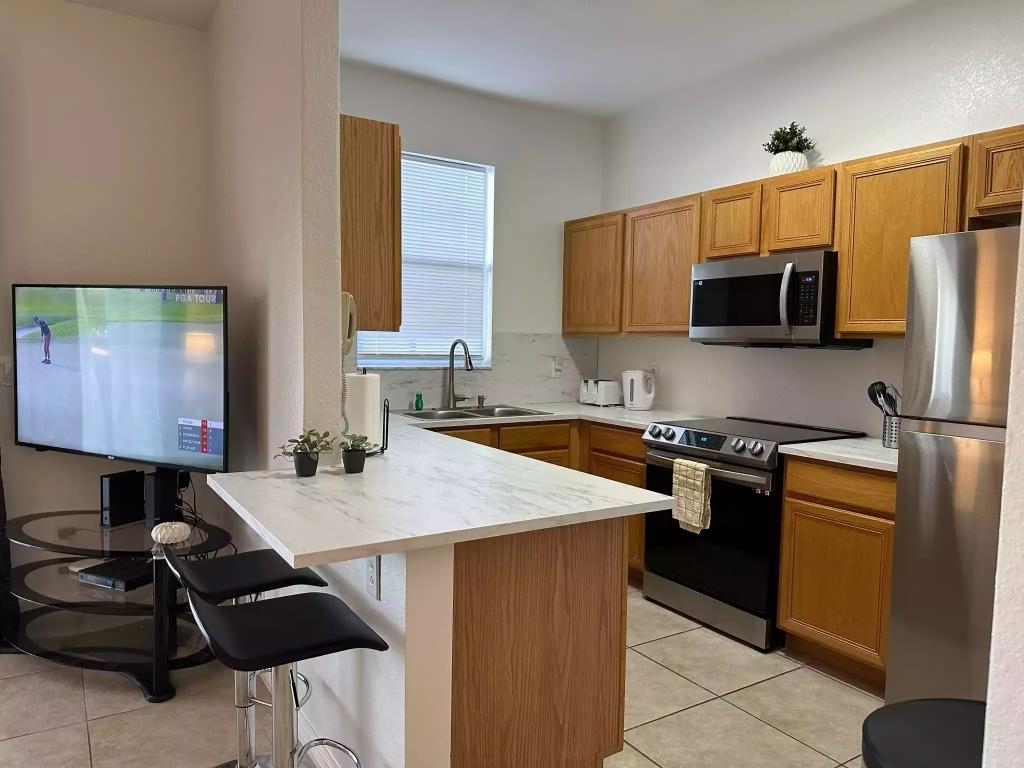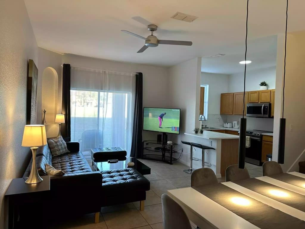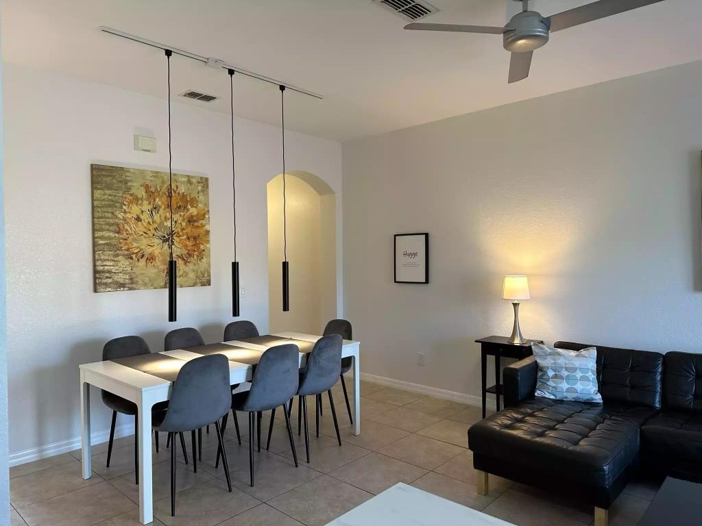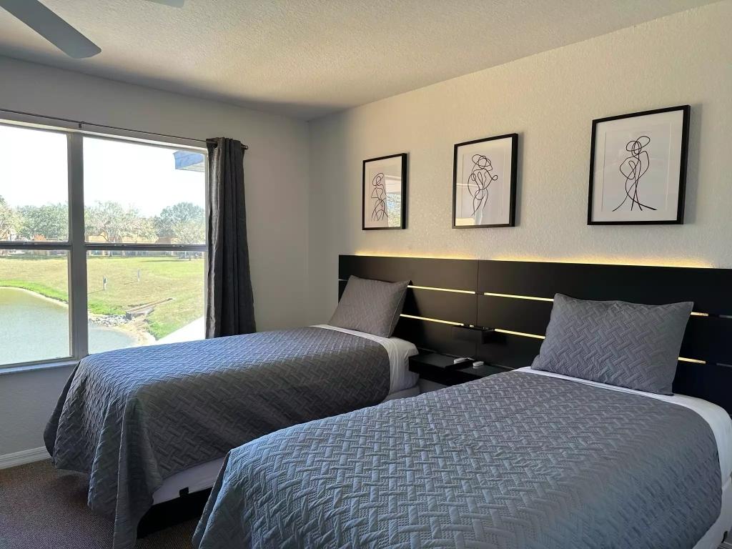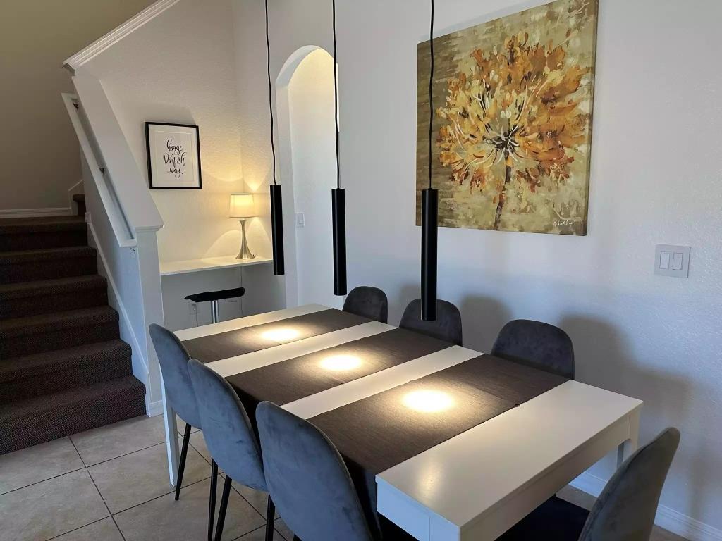 Villa Hygge at Regal Palms, Beautiful House rental in Davenport has 3 bedrooms, 3 bathrooms, 6 sleeps, 1 minimum stay House for rent in Davenport Florida with the amenities and near by attractions , Air Conditioning, Balcony, Deck/Patio, Fitness Room , Free WiFi, Full Kitchen, Game Room, Heated Pool, Heating, Hot Tub, Internet, Lake View, Linens Provided, Managed by Owner, No Pets Allowed, Non-Smoking, Outdoor Shower, Parking, Pool Table, Porch / Veranda, Towels Provided, Water View, Waterfront, Wireless Internet, Washing Machine, Kitchen, Swimming pool, Fire extinguisher, No Smoking, No parties/events, Smoke detector, Exterior lighting, Outdoor Pool, Blender, Microwave, Cable/Satellite TV, Outdoor Grill, Television, Ceiling Fans, Freezer, Oven, Toaster, Coffee Maker , Hair Dryer , Refrigerator, Washer/Dryer , Dishes & Utensils, Iron & Board , Stove, Dishwasher, Heater, Clothes Dryer, Ice Maker, Dining Area, Toilet Paper, Living Room, Kettle, Hangers, Microwave/Air Fryer, Ironing Board, Swimming, Outlet shopping, Theme parks, Water parks, Health/beauty spa, Shopping, Wildlife viewing, Basketball court, Golf, Water tubing, golf privileges optional, fitness centerBathtub, Hot water, Room-darkening shades, Safe, Clothing storage: walk-in closet and dresser, Ethernet connection, Exercise equipment: free weights, treadmill, yoga mat, Pack ’n play/Travel crib, Standalone high chair, Central heating, Security cameras on property, Dedicated workspace, Siemens refrigerator, Siemens stainless steel stove, Siemens stainless steel single oven, Wine glasses, Trash compactor, Dining table, Private entrance, Paid resort access, Shared backyard – Not fully fenced, Outdoor furniture, BBQ grill, Shared pool, Shared hot tub, Shared sauna, Shared gym nearby, Breakfast, Long-term stays allowed