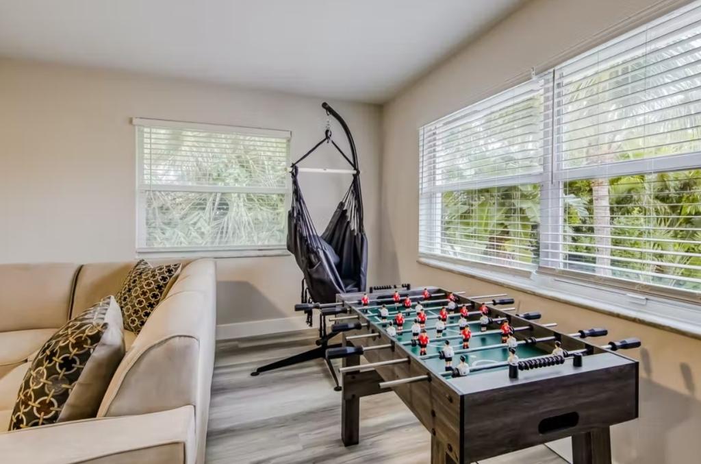 Responsible for gas of BBQ and Fire Pit. BBQ and Firepit work on propane tanks. It is guests' responsibility to turn the gas on and off. Turn the propane tanks off after every use. Failure to turn off will cause the gas to continue to run and be a fire hazard. (6) Please lock front door when leaving the home. (7) Close windows when leaving the home. (8) Be AC smart. Throughout most of the year it will be very hot outside and we suggest keeping your AC set to 73-76 degrees Fahrenheit. Do not leave windows open for long periods of time. It may break the air conditioner as the AC needs to work harder to cool the home when windows are open letting hot air inside. (9) No candles. (10) Clean up after your furbabies. If you leave dog “gifts” inside or outside the premises, you may be charged additional fees. (11) No refunds for “pesty neighbors" Guest understands that Florida is located in a tropical climate, and that insects, rodents and lizards flourish in this environment. Seeing such a pest within or outside the unit does not constitute a breach of this Agreement or give Guest any right to a refund or rental adjustment. The home is sprayed/monitored by Pest Control and guests can ask the host for spraying. (12) Take out the trash. Trash can is on the west side of the building.