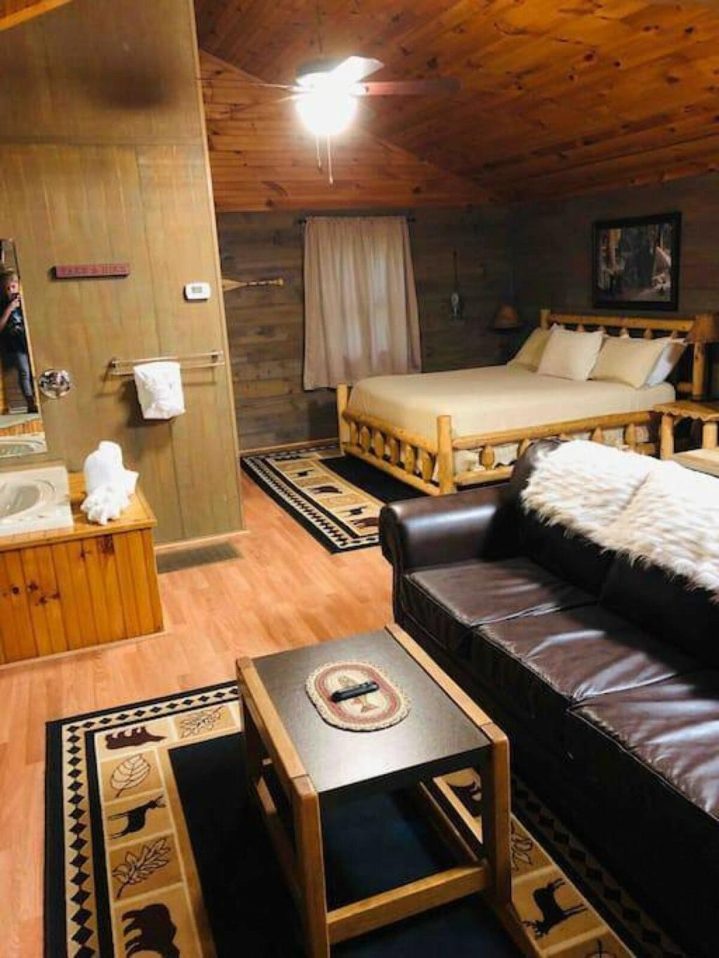 The Fishing Hole | Weekly & Monthly Discounts, Beautiful Cabin rental in Sevierville has 1 bedrooms, 1 bathrooms, 6 sleeps, 1 minimum stay Cabin for rent in Sevierville Tennessee with the amenities and near by attractions , Air Conditioning, Balcony, Children allowed, Children Welcome, Fireplace, Heated Pool, Hot Tub, Kitchen, Linens Provided, Pet Friendly, Towels Provided, Wireless Internet, Basic Soaps, Coffee Maker , Dishes & Utensils, First-aid kit, Heater, Microwave, Oven, Refrigerator, Shampoo, Stove, Television, Toaster, Toilet Paper, Antiquing, MuseumsBaby crib, Laptop Friendly workspace, Linens