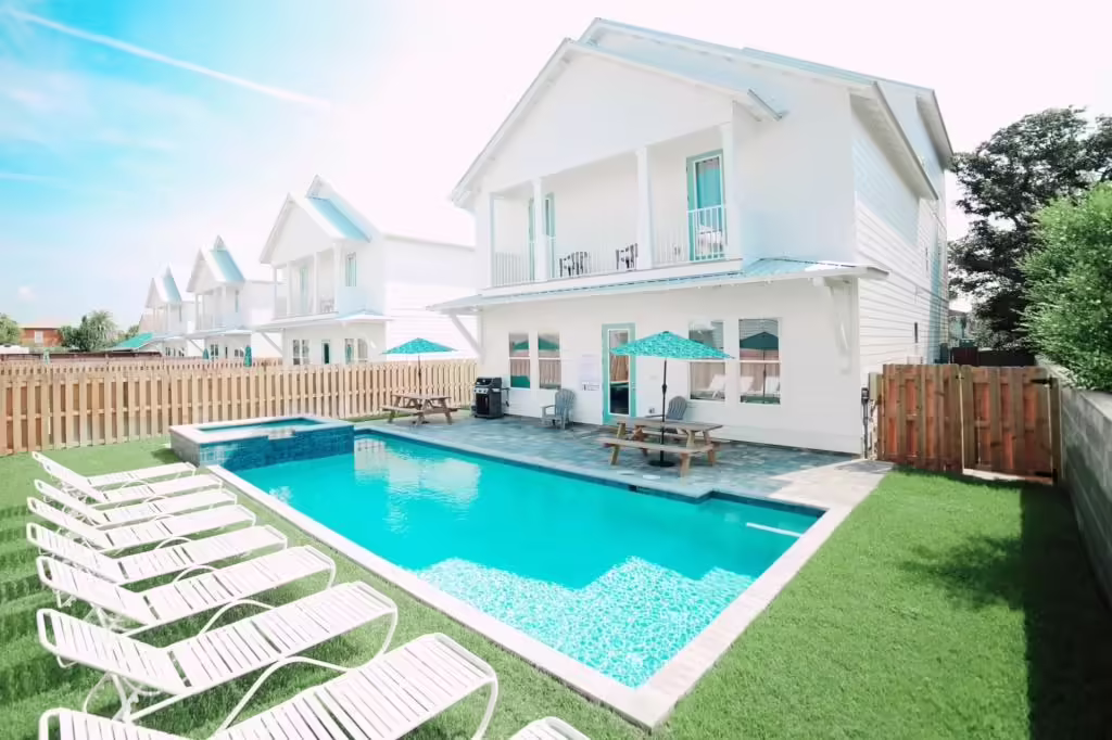 Island Ease- NEW -Private Pool Hot Tub-Golf Cart included-Weddings, Beautiful House rental in Miramar Beach has 8 bedrooms, 8 bathrooms, 28 sleeps, 1 minimum stay House for rent in Miramar Beach Florida with the amenities and near by attractions , Air Conditioning, Balcony, Paper Towels, Deck/Patio, Free WiFi, Full Kitchen, Game Room, Heated Pool, Heating, Hot Tub, Internet, Kid Friendly, Kitchenette, Linens Provided, Managed by Owner, No Pets Allowed, Non-Smoking, Ocean View, Outdoor Shower, Parking, Pool Table, Private Pool, Towels Provided, Wireless Internet, Washing Machine, Kitchen, Children Welcome, Swimming pool, Fire extinguisher, Children allowed, No Smoking, Smoke detector, Carbon-monoxide detector, Exterior lighting, Carbon monoxide detector, Outdoor Pool, Blender, Microwave, Cable/Satellite TV, Outdoor Grill, Television, Ceiling Fans, Freezer, Oven, Toaster, Coffee Maker , Hair Dryer , Refrigerator, Washer/Dryer , Dishes & Utensils, Iron & Board , Stove, Dishwasher, Heater, Clothes Dryer, Ice Maker, Dining Area, Basic Soaps, Toilet Paper, Living Room, Shampoo, Hangers, Microwave/Air Fryer, Mini Refrigerator, Ironing BoardPorch, Private Porch, Foosball, Foosball, Golf cart, Bathroom & Laundry, Bed linen, Essentials, Shower, Bathtub, Child's high chair, Coffee machine, Vacuum cleaner, Water cooler, Water purifier
