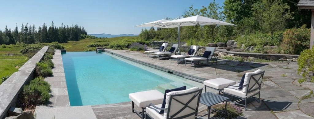 52 Acre Oceanfront Retreat W/nature Trails And Beaches, Beautiful Estate rental in North Haven has 4 bedrooms, 4.5 bathrooms, 8 sleeps, 7 minimum stay Estate for rent in North Haven Maine with the amenities and near by attractions , Beach View, Fireplace, Heating, Internet, Kayak / Canoe, Kid Friendly, Linens Provided, Managed by Owner, Non-Smoking, Ocean View, Oceanfront, Outdoor Shower, Parking, Pet Friendly, Private Pool, Towels Provided, Water View, Waterfront, Wireless Internet, Washing Machine, Kitchen, Swimming pool, Fire extinguisher, No Smoking, No parties/events, Beachfront, Smoke detector, Exterior lighting, Mountain View, Carbon monoxide detector, Blender, Microwave, Telephone, Cable/Satellite TV, Outdoor Grill, Television, Oven, Toaster, Coffee Maker , Hair Dryer , Refrigerator, Dishes & Utensils, Iron & Board , Stove, Dishwasher, Coffee Grinder, First-aid kit, Clothes Dryer, Ice Maker, Living Room, Kettle, Swimming, Fishing, Bird watching, Ecotourism, Boating, Bay/sound, Wildlife viewing, Cycling, Golf, Hiking, Kayaking, Rock climbing, SailingLobster pot, Fire pit, Outdoor furniture, Beach towels, Games, Books, Stereo, Exterior lighting, North Haven Clinic, Rural, Wireless Internet (200 MB Down - 20 MB Up), Separate Guest Apartment Available --ask Owner for details. Kitchen Bosch Microwave Dishes & Utensils Dualit Toaster Sub-Zero Refrigerator Technivorm Moccamaster Coffee Maker Bosch Dishwasher Verona Oven Sub-Zero Ice Maker Sub-Zero Wine Refrigerator Thermador Gas Cooktop (five burners) Pool Private infinity pool with waterfall. Perfect to play or swim laps. Seating ledge. Steps to walk in. 9ft in deep end. Overlooks Penobscot Bay towards Vinalhaven islands. Not heated. Pool Dimensions - 16ftx50ft Outside Outdoor furniture over three patios Beach towels 2-person and 1 person kayaks available Golf (off-property), 9-hole golf course Extensive Walking Trails Outdoor Fireplace on Camden Porch Outdoor Firepit by pool 2 Outdoor Kitchens, including built-in grill Entertainment LG OLED 4K Television Board and Outdoor Games Whole House Stereo Books Satellite/Cable Coastal Seating Streaming Video via Apple 4K TV Laundry LG Washing machine LG Clothes dryer