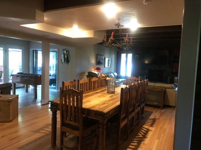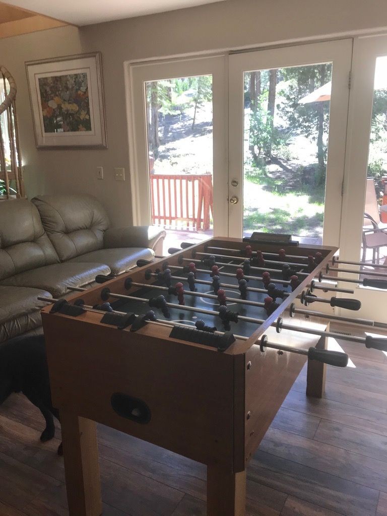 Tall Tree Lodge 5bed/4bath Tranquil forest Setting, Beautiful Cabin rental in South Lake Tahoe has 5 bedrooms, 4 bathrooms, 8 sleeps, 3 minimum stay Cabin for rent in South Lake Tahoe California with the amenities and near by attractions , Beach Chairs, Carbon monoxide detector, Fire extinguisher, Fireplace, Fitness Room , Free WiFi, Garage, Heating, Internet, Kitchen, Linens Provided, Mountain View, Paper Towels, Parking, Smoke detector, Towels Provided, Washing Machine, Basic Soaps, Cable/Satellite TV, Coffee Grinder, Dining Area, Dishes & Utensils, Dishwasher, First-aid kit, Hair Dryer , Ice Maker, Iron & Board , Ironing Board, Microwave, Outdoor Grill, Oven, Refrigerator, Shampoo, Stove, Telephone, Television, Toaster, Toilet Paper, Washer/Dryer , Antiquing, Bird watching, Boating, Cross country skiing, Cycling, Ecotourism, Fishing, fitness center, Gambling casinos, Golf, Health/beauty spa, Hiking, Horseback riding, Ice skating, Jet skiing, Kayaking, Mountain biking, Mountain climbing, Museums, Outlet shopping, Paddle boating, Parasailing, Rafting, Rock climbing, Shopping, Skiing, Sledding, Snowboarding, Snowmobiling, Swimming, Water skiing, Wildlife viewing, Wind-surfing, Winery toursGym & Equipment, Wood stove, Desk, Desk chair, Dining table, Coffee pot, Beach towels, Bikes, Boat, Gaming, Books, Stereo, Music Library, Foosball, Children's games, Toys, Children's Books, Safety lock, Outdoor Lighting, Emergency Exit Route, Hospital Contact, Police Contact