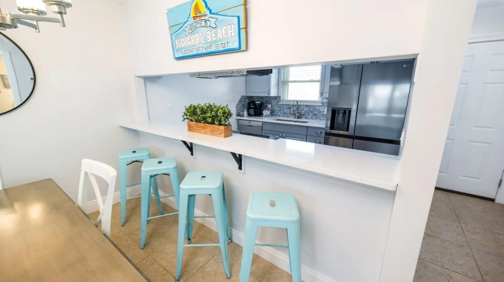 SUPER CLEAN Deja Blue BEACH Townhome - Heated POOL, Beautiful Townhome rental in Navarre has 2 bedrooms, 2.5 bathrooms, 7 sleeps, 1 minimum stay Townhome for rent in Navarre Florida with the amenities and near by attractions , Air Conditioning, Beach Chairs, Beach View, Children allowed, Exterior lighting, Fire extinguisher, Free WiFi, Heated Pool, Heating, Internet, Kitchen, Linens Provided, No parties/events, No Pets Allowed, No Smoking, Outdoor Pool, Paper Towels, Parking, Private Pool, Smoke detector, Towels Provided, Washing Machine, Wireless Internet, Basic Soaps, Blender, Cable/Satellite TV, Clothes Dryer, Coffee Maker , Dining Area, Dishes & Utensils, Dishwasher, Hair Dryer , Ice Maker, Kettle, Microwave, Outdoor Grill, Oven, Refrigerator, Shampoo, Stove, Television, Toaster, Toilet Paper, Fishing, Outlet shopping, Parasailing, Shopping, Surfing, Swimming, Theme parks, Water parks, Water sportsDining table, Spa whirlpool, Outdoor furniture, Beach towels, Games for kids, Dishes & utensils for kids, Deadbolt lock