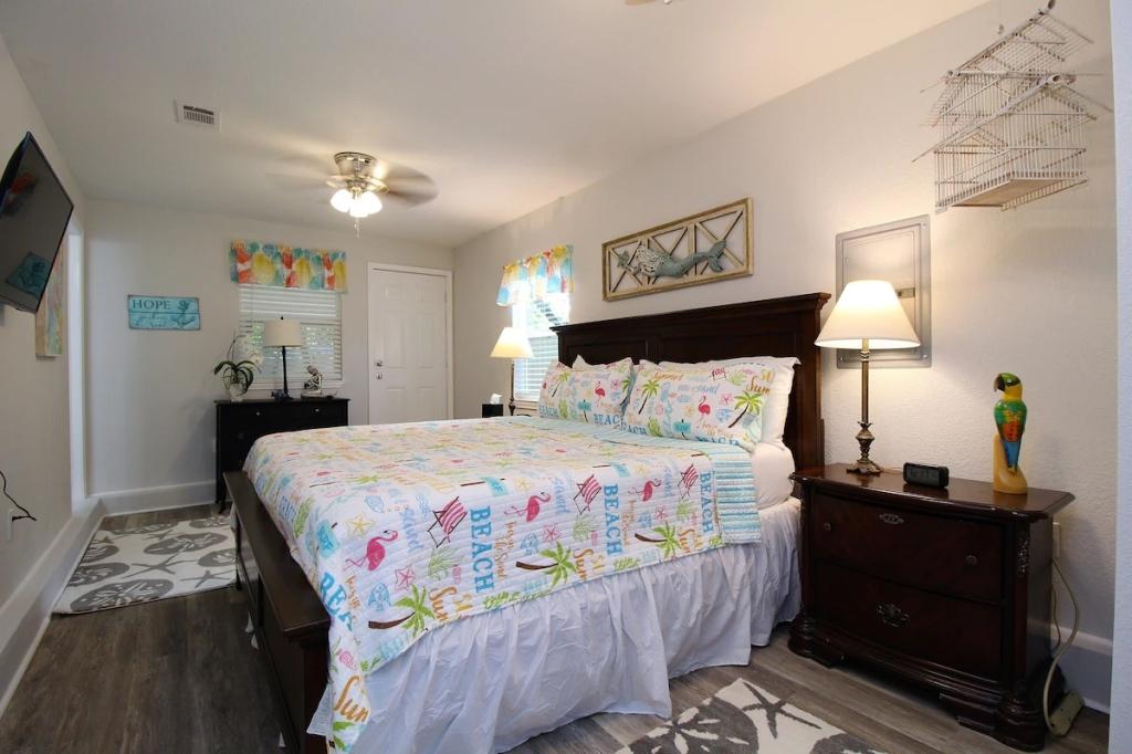 PENSACOLA RUE LA LA 3/2 w/ Office & Covered Patio 15'x25', Beautiful Bungalow rental in Pensacola has 3 bedrooms, 1 bathrooms, 7 sleeps, 1 minimum stay Bungalow for rent in Pensacola Florida with the amenities and near by attractions , Air Conditioning, Beach View, Beachfront, Carbon monoxide detector, Exterior lighting, Fire extinguisher, Free WiFi, Heating, Kitchen, Linens Provided, Ocean View, Oceanfront, Parking, Smoke detector, Towels Provided, Washing Machine, Waterfront, Wireless Internet, Basic Soaps, Blender, Cable/Satellite TV, Clothes Dryer, Coffee Maker , Dining Area, Dishes & Utensils, Dishwasher, First-aid kit, Hair Dryer , Ice Maker, Iron & Board , Microwave, Outdoor Grill, Oven, Refrigerator, Stove, Television, Toaster, Toilet Paper, Antiquing, Bay/sound, Bird watching, Boating, Cycling, Ecotourism, Fishing, Golf, Health/beauty spa, Jet skiing, Kayaking, Museums, Paddle boating, Parasailing, Rock climbing, Sailing, Shopping, Snorkeling, Surfing, Swimming, Water skiing, Water sports, Wildlife viewing, Wind-surfing, Winery toursPrinter, Desk, Desk chair, Kitchen island, Dining table, Lobster pot, Spa whirlpool, Outdoor furniture, Travel crib, Games for kids, Toys, Bunk bed, Books for kids, Deadbolt lock, Fenced yard, Emergency exit route, Downtown, Long-term renters welcome