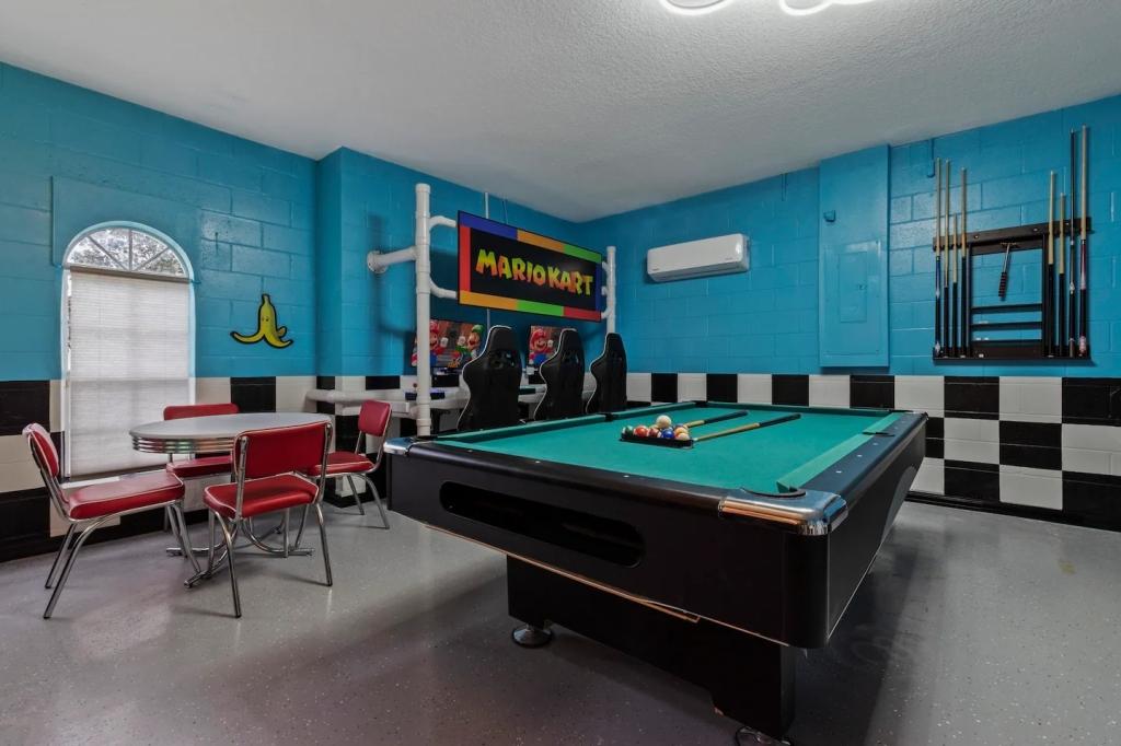 5bd Villa Eman Private Pool/Hot Tub close2Legoland, Beautiful Villa rental in Haines City has 5 bedrooms, 4.5 bathrooms, 10 sleeps, 4 minimum stay Villa for rent in Haines City Florida with the amenities and near by attractions , Air Conditioning, Balcony, Carbon monoxide detector, Children allowed, Deck/Patio, Fire extinguisher, Fireplace, Free WiFi, Heating, Hot Tub, Internet, Kitchen, Linens Provided, Managed by Owner, No Smoking, Parking, Pool Table, Private Pool, Smoke detector, Swimming pool, Towels Provided, Washing Machine, Wireless Internet, Basic Soaps, Blender, Ceiling Fans, Coffee Maker , Dining Area, Dishes & Utensils, Dishwasher, First-aid kit, Hair Dryer , Hangers, Ironing Board, Kettle, Microwave, Outdoor Grill, Oven, Refrigerator, Shampoo, Television, Toaster, Toilet Paper, Washer/Dryer , Cycling, fitness center, golf privileges optional, Health/beauty spa, Hospital, Outlet shopping, Swimming, Theme parks, Water parksCleaning products, Conditioner, Bidet, Outdoor shower, Hot water, Safe, Ethernet connection, 55" HDTV, Cot – always at the listing, Children’s books and toys for ages 2–5 years old, 5–10 years old and 10+ years old, Standalone high chair, Central air conditioning, Central heating, Dedicated workspace, Pots and pans, oil, salt and pepper, Electric cooker, Baking sheet, Rice cooker, Dining table, Outdoor furniture, Private indoor pool, Long-term stays allowed, Self check-in