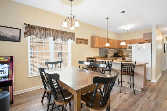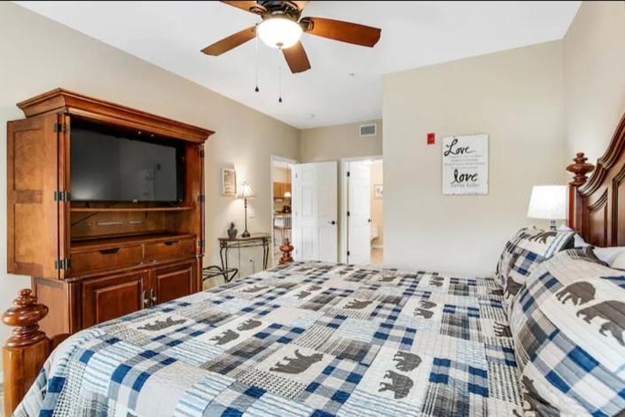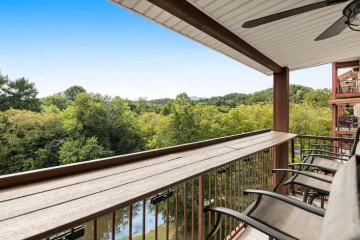 Bandits Riverfront Retreat * Fishing * Fireplace * Mountain and River views * Game Rm * Workout Rm * Balcony w/Bar * Jacuzzi Tub * Free WiFi * Elevator * Riverwalk *Pet Friendly*, Beautiful Condo rental in Sevierville has 3 bedrooms, 2 bathrooms, 6 sleeps, 1 minimum stay Condo for rent in Sevierville Tennessee with the amenities and near by attractions , Air Conditioning, Balcony, Paper Towels, Communal Pool, Elevator, Fireplace, Fitness Room , Free WiFi, Full Kitchen, Game Room, Heating, Hot Tub, Internet, Linens Provided, Managed by Owner, Parking, Pet Friendly, Towels Provided, Water View, Waterfront, Wireless Internet, Washing Machine, Kitchen, Children Welcome, Fire extinguisher, Children allowed, Smoke detector, Carbon-monoxide detector, Exterior lighting, Mountain View, Carbon monoxide detector, Outdoor Pool, Blender, Microwave, Cable/Satellite TV, Television, Ceiling Fans, Freezer, Oven, Toaster, Coffee Maker , Hair Dryer , Refrigerator, Washer/Dryer , Dishes & Utensils, Iron & Board , Stove, Dishwasher, First-aid kit, Clothes Dryer, Ice Maker, Dining Area, Basic Soaps, Toilet Paper, Living Room, Kettle, Shampoo, Hangers, Ironing Board, Waffle Iron, Swimming, Outlet shopping, Winery tours, Fishing, Theme parks, Bird watching, Boating, Museums, Water parks, Horseback riding, Antiquing, Shopping, Sledding, Wildlife viewing, Cycling, Golf, Hiking, Mountain biking, Mountain climbing, Rafting, fitness centerGame room, Child's highchair, Deadbolt lock, Fenced pool, Outdoor security cameras