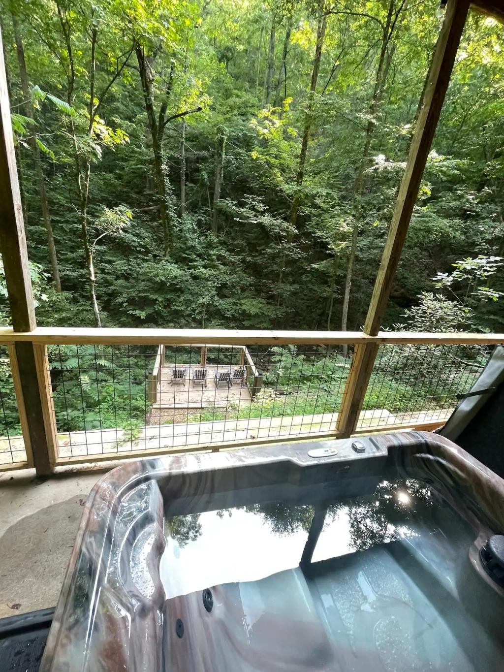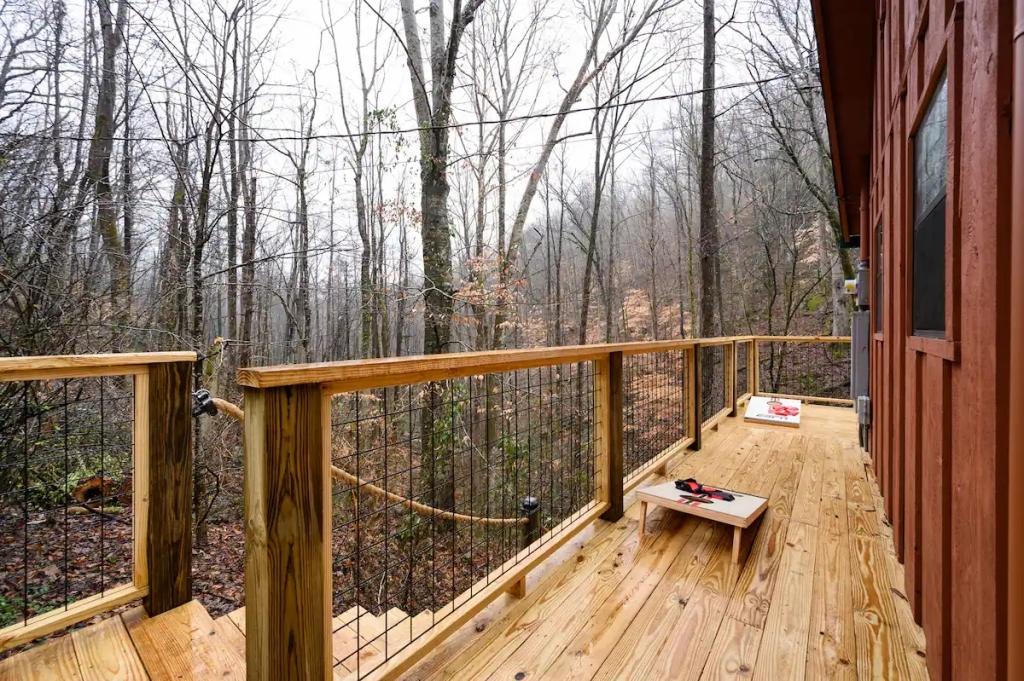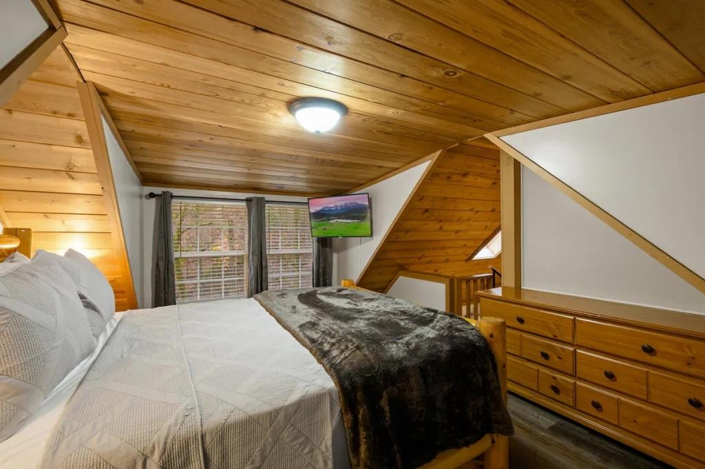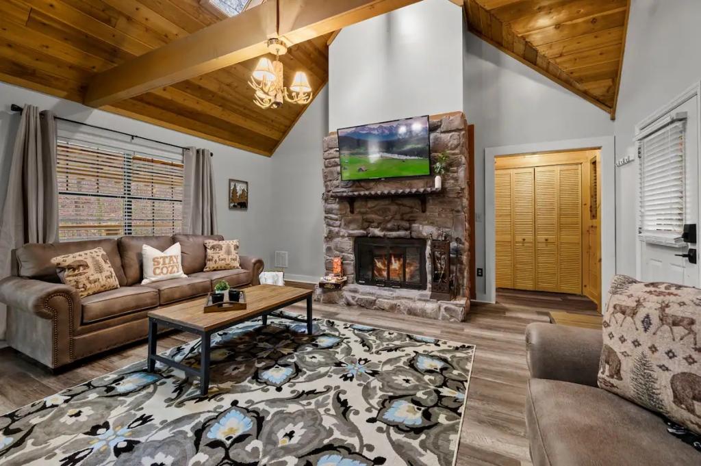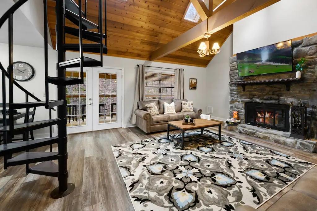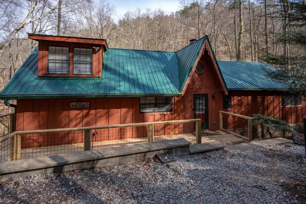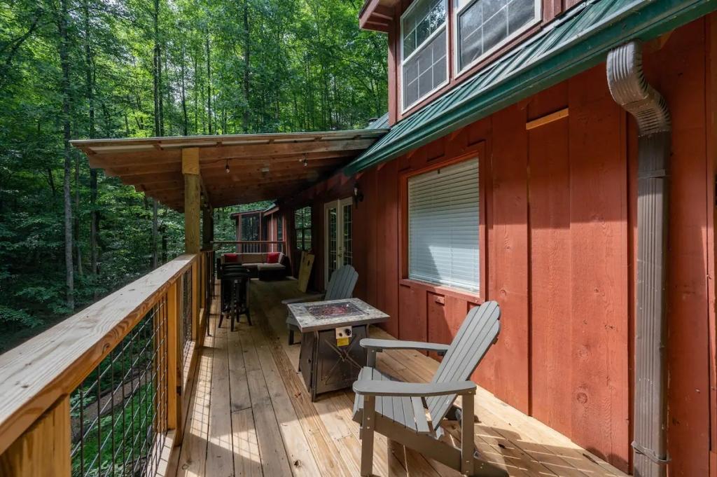 Couples Escape, hot tub, private creek close to attractions, Beautiful Cabin rental in Sevierville has 2 bedrooms, 2 bathrooms, 6 sleeps, 2 minimum stay Cabin for rent in Sevierville Tennessee with the amenities and near by attractions , Air Conditioning, Balcony, Deck/Patio, Fireplace, Free WiFi, Heating, Hot Tub, Linens Provided, Parking, Towels Provided, Waterfront, Kitchen, Fire extinguisher, Children allowed, Smoke detector, Carbon monoxide detector, Microwave, Outdoor Grill, Ceiling Fans, Oven, Toaster, Coffee Maker , Hair Dryer , Refrigerator, Dishes & Utensils, Dishwasher, Dining Area, Toilet Paper, Shampoo, Hangers, Swimming, Outlet shopping, Winery tours, Fishing, Theme parks, Bird watching, Ecotourism, Museums, Water parks, Health/beauty spa, Zoo, Horseback riding, Antiquing, Shopping, Sledding, Wildlife viewing, Cycling, Golf, Hiking, Kayaking, Mountain biking, Mountain climbing, Rafting, Rock climbing, Ski lift privileges, Snowboarding, Water tubing, Hospital, fitness centerRiver view, Conditioner, Body soap, Hot water, Free washer – In unit, Free dryer – In unit, Extra pillows and blankets, Room-darkening blinds, Clothes storage: wardrobe and chest of drawers, 65" HDTV, Board games, Central air conditioning, Indoor fireplace, Portable fans, Security cameras on property, Dedicated workspace, Cooking basics, Pots and pans, salt and pepper, Stainless steel electric cooker, Wine glasses, Baking sheet, Barbecue utensils, Coffee, Private entrance, Private back garden – Not fully fenced, Firepit, Outdoor furniture, BBQ grill, Self check-in, Smart lock
