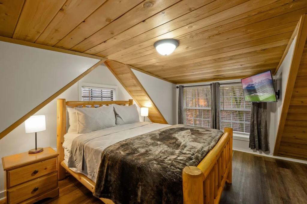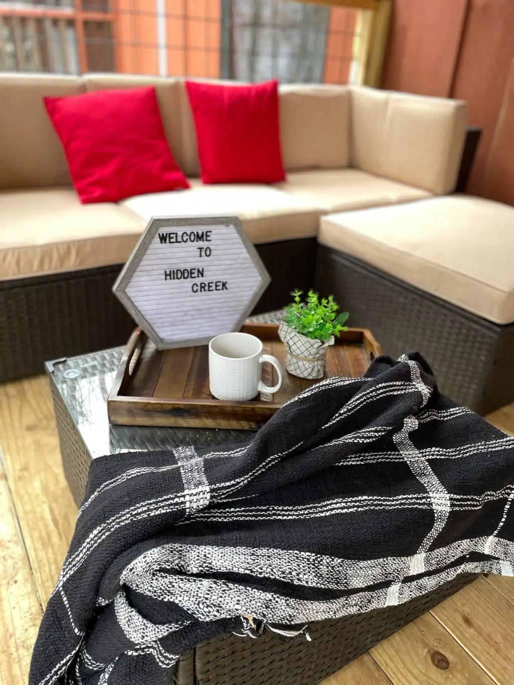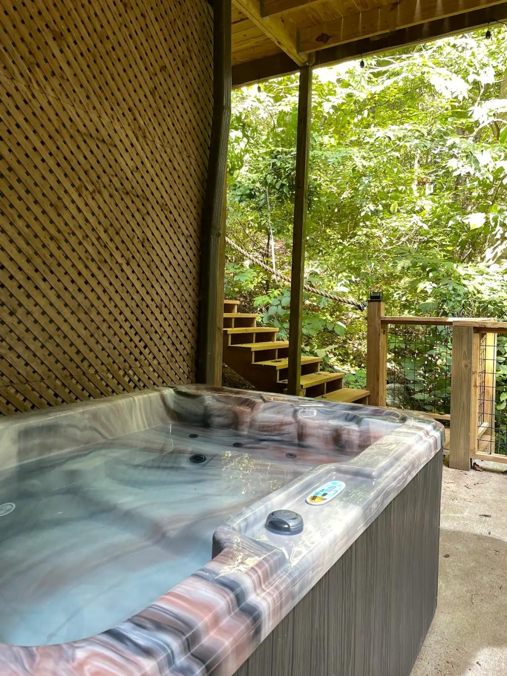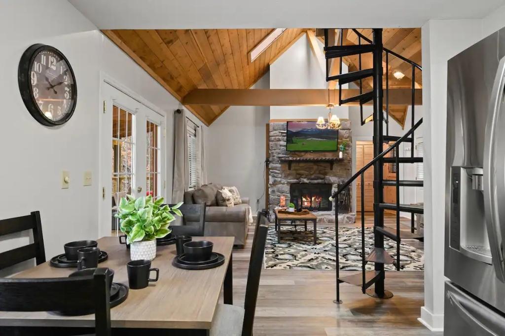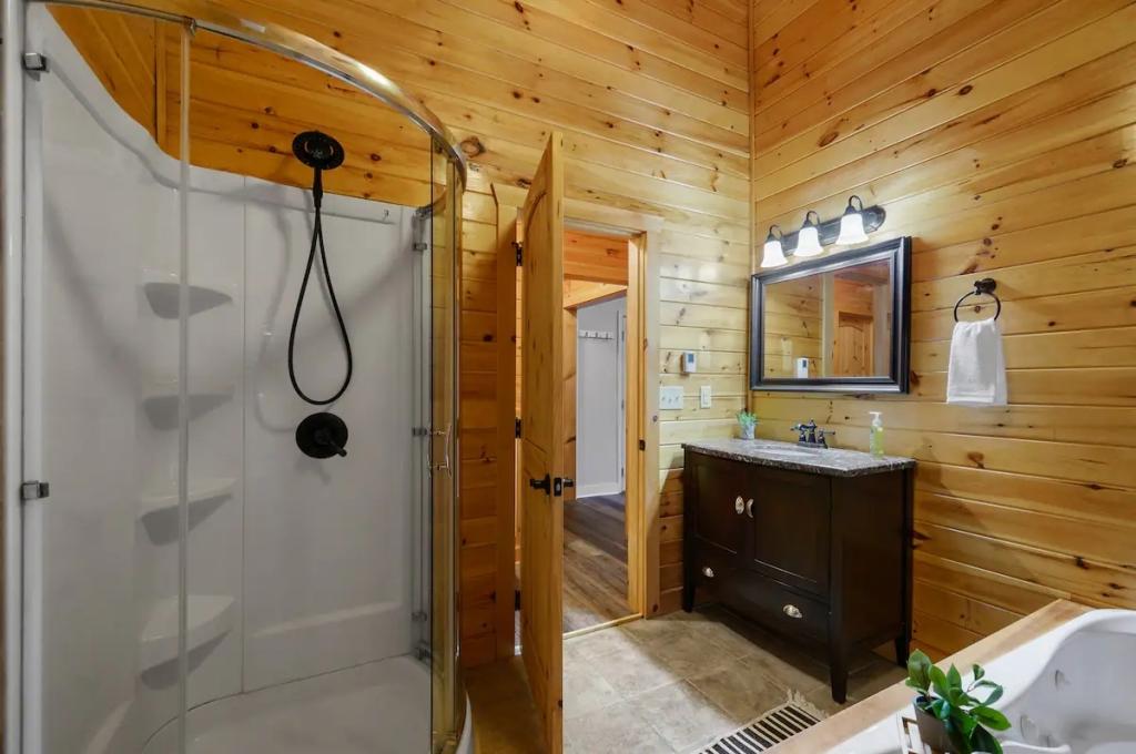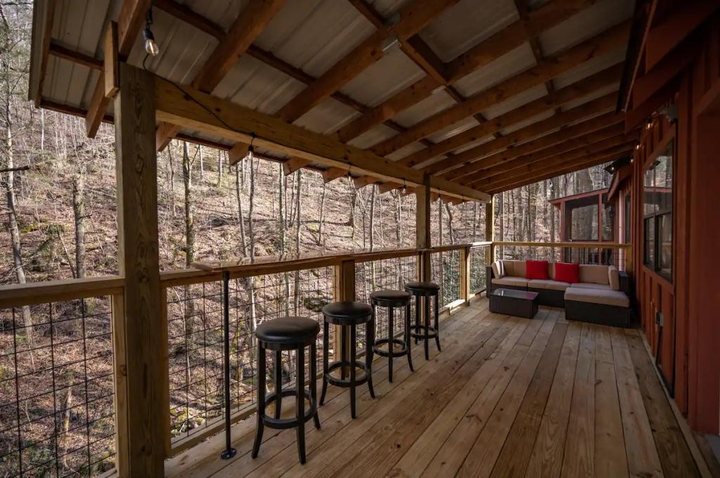 Couples Escape, hot tub, private creek close to attractions, Beautiful Cabin rental in Sevierville has 2 bedrooms, 2 bathrooms, 6 sleeps, 2 minimum stay Cabin for rent in Sevierville Tennessee with the amenities and near by attractions , Air Conditioning, Balcony, Deck/Patio, Fireplace, Free WiFi, Heating, Hot Tub, Linens Provided, Parking, Towels Provided, Waterfront, Kitchen, Fire extinguisher, Children allowed, Smoke detector, Carbon monoxide detector, Microwave, Outdoor Grill, Ceiling Fans, Oven, Toaster, Coffee Maker , Hair Dryer , Refrigerator, Dishes & Utensils, Dishwasher, Dining Area, Toilet Paper, Shampoo, Hangers, Swimming, Outlet shopping, Winery tours, Fishing, Theme parks, Bird watching, Ecotourism, Museums, Water parks, Health/beauty spa, Zoo, Horseback riding, Antiquing, Shopping, Sledding, Wildlife viewing, Cycling, Golf, Hiking, Kayaking, Mountain biking, Mountain climbing, Rafting, Rock climbing, Ski lift privileges, Snowboarding, Water tubing, Hospital, fitness centerRiver view, Conditioner, Body soap, Hot water, Free washer – In unit, Free dryer – In unit, Extra pillows and blankets, Room-darkening blinds, Clothes storage: wardrobe and chest of drawers, 65" HDTV, Board games, Central air conditioning, Indoor fireplace, Portable fans, Security cameras on property, Dedicated workspace, Cooking basics, Pots and pans, salt and pepper, Stainless steel electric cooker, Wine glasses, Baking sheet, Barbecue utensils, Coffee, Private entrance, Private back garden – Not fully fenced, Firepit, Outdoor furniture, BBQ grill, Self check-in, Smart lock