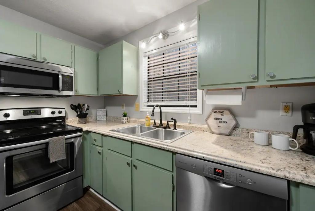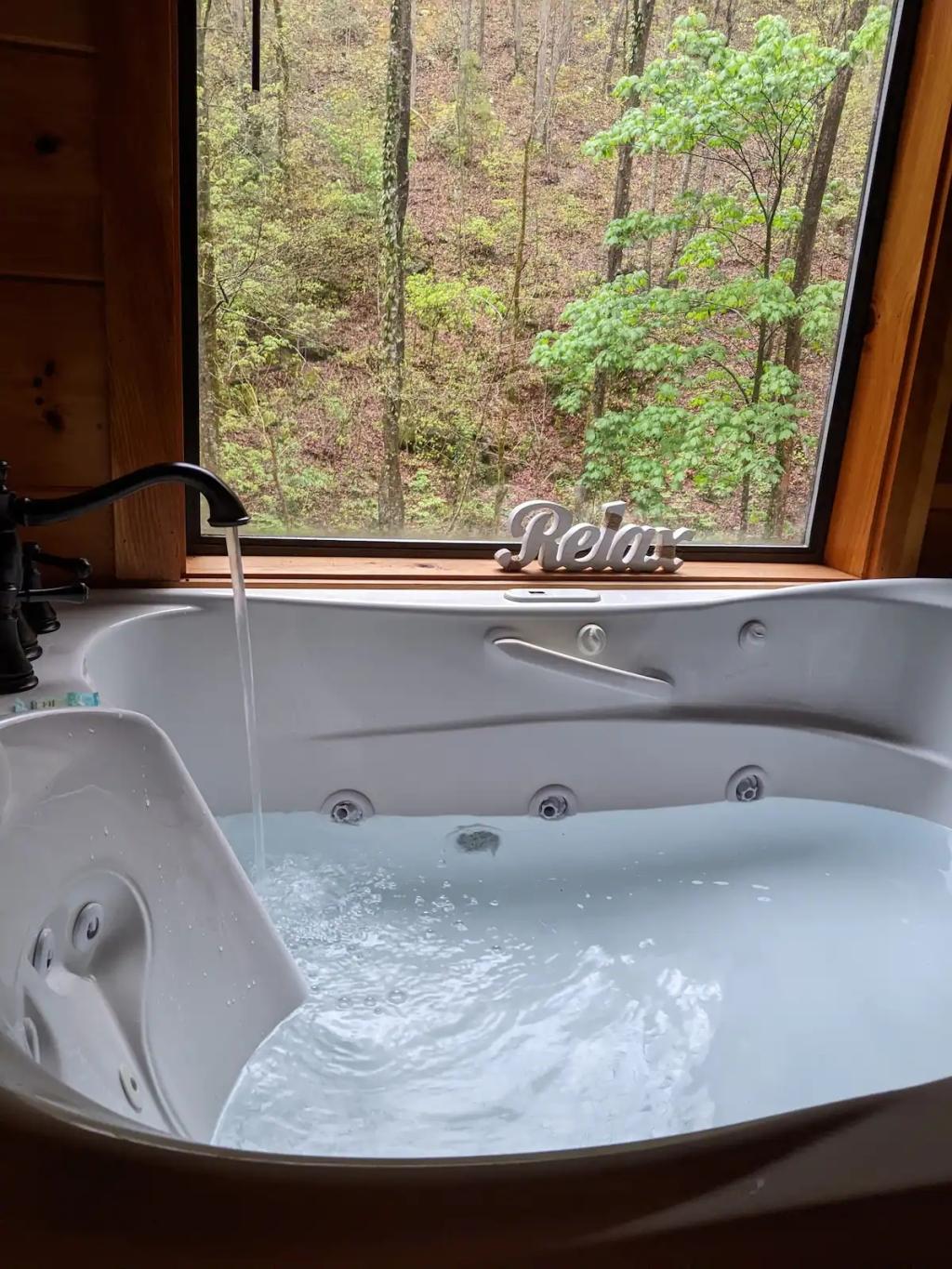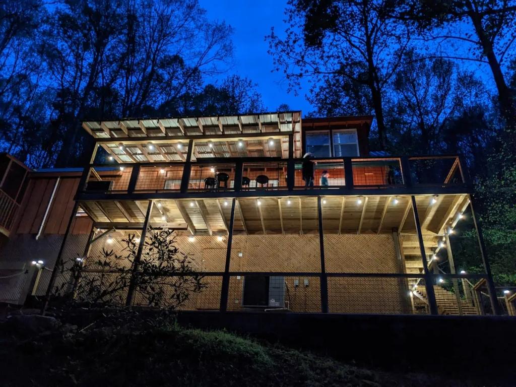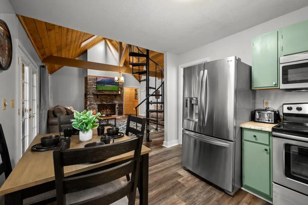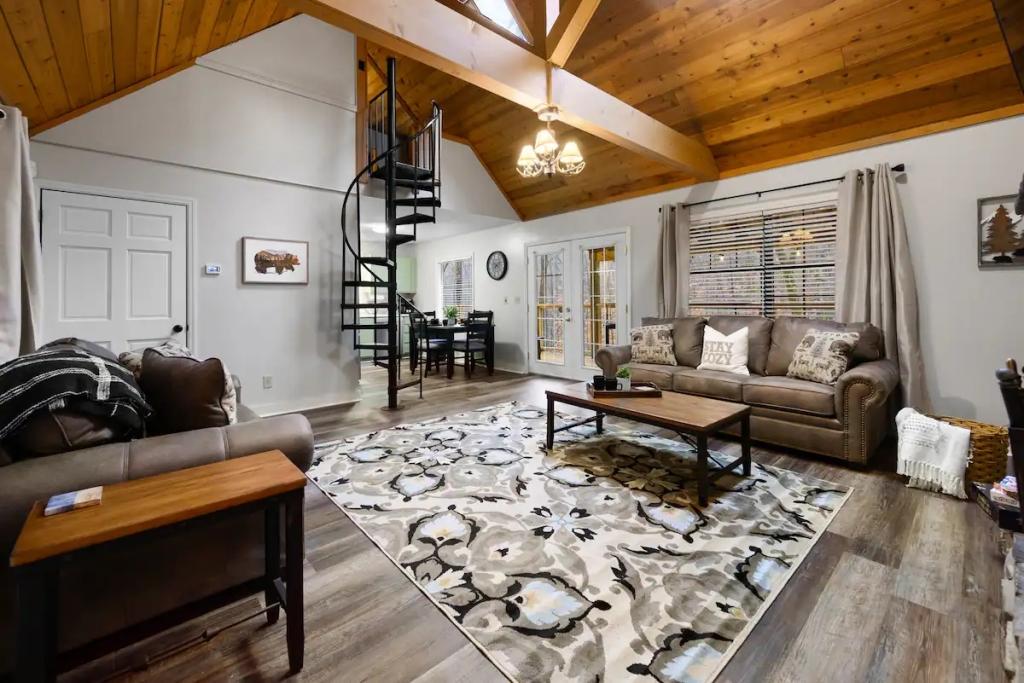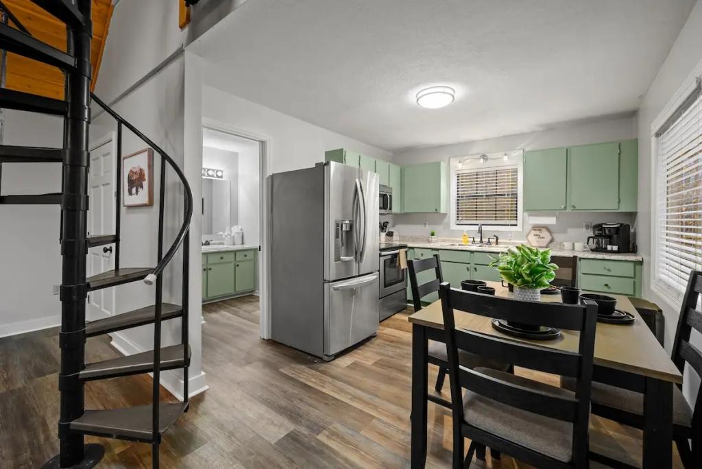 Couples Escape, hot tub, private creek close to attractions, Beautiful Cabin rental in Sevierville has 2 bedrooms, 2 bathrooms, 6 sleeps, 2 minimum stay Cabin for rent in Sevierville Tennessee with the amenities and near by attractions , Air Conditioning, Balcony, Deck/Patio, Fireplace, Free WiFi, Heating, Hot Tub, Linens Provided, Parking, Towels Provided, Waterfront, Kitchen, Fire extinguisher, Children allowed, Smoke detector, Carbon monoxide detector, Microwave, Outdoor Grill, Ceiling Fans, Oven, Toaster, Coffee Maker , Hair Dryer , Refrigerator, Dishes & Utensils, Dishwasher, Dining Area, Toilet Paper, Shampoo, Hangers, Swimming, Outlet shopping, Winery tours, Fishing, Theme parks, Bird watching, Ecotourism, Museums, Water parks, Health/beauty spa, Zoo, Horseback riding, Antiquing, Shopping, Sledding, Wildlife viewing, Cycling, Golf, Hiking, Kayaking, Mountain biking, Mountain climbing, Rafting, Rock climbing, Ski lift privileges, Snowboarding, Water tubing, Hospital, fitness centerRiver view, Conditioner, Body soap, Hot water, Free washer – In unit, Free dryer – In unit, Extra pillows and blankets, Room-darkening blinds, Clothes storage: wardrobe and chest of drawers, 65" HDTV, Board games, Central air conditioning, Indoor fireplace, Portable fans, Security cameras on property, Dedicated workspace, Cooking basics, Pots and pans, salt and pepper, Stainless steel electric cooker, Wine glasses, Baking sheet, Barbecue utensils, Coffee, Private entrance, Private back garden – Not fully fenced, Firepit, Outdoor furniture, BBQ grill, Self check-in, Smart lock