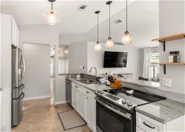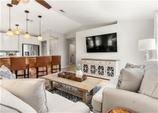 Coastal Rose- Maravilla, Beautiful House rental in Maravilla has 3 bedrooms, 2 bathrooms, 11 sleeps, 1 minimum stay House for rent in Maravilla Florida with the amenities and near by attractions , Pet Friendlycombination tub/shower, sleep sofa /futon, toilet, tub, bay/sound, churches, cinemas, coin laundry, festivals, library, marina, museums, playground, reefs, restaurants, synagogues, water parks, winery tours, zoo, Dining, Satellite / Cable, Television, Smart TV, Air Conditioning, Clothes Dryer, Fitness Room / Equipment, Garage, Hair Dryer, Heating, Internet, Iron & Board, Linens Provided, Living Room, Parking, Towels Provided, Washing Machine, Wifi, Free Wifi, Wifi Speed 250+ Mbps, Travel Crib, Coffee Maker, Dishes & Utensils, Dishwasher, Ice Maker, Kitchen, Microwave, Oven, Refrigerator, Stove, Toaster, Dining Table, antiquing, beachcombing, bird watching, outlet shopping, photography, scenic drives, sight seeing, walking, ATM/bank, Babysitter, fitness center, groceries, hospital, laundromat, massage therapist, medical services, Beach, Near The Ocean, Resort, Bicycles, Deck / Patio, Outdoor Grill, Tennis, Fenced Pool, Fenced Yard, Communal Pool, Heated Pool, Hot Tub, cycling, deepsea fishing, fishing, golf, jet skiing, paragliding, roller blading, sailing, scuba diving or snorkeling, snorkeling, sound/bay fishing, surf fishing, surfing, swimming, tennis, water skiing, wind-surfing, children welcome, pets considered, Minimum Age Limit for Renters, Private entrance, flexible, recommended, Guests provide their own meals, Dining Area, Adventure, Away From It All, Budget, Family, Historic, Romantic, Spa, Sports & Activities, Tourist Attractions, Golf Cart, Private Beach Access