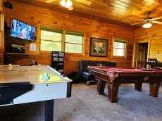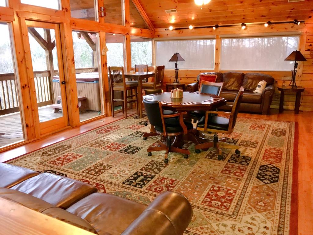 TWO Hot Tubs! BEAUTIFUL Views-3 Bdrm/3 Bath-Community Pool, Beautiful Cabin rental in Sevierville has 3 bedrooms, 3 bathrooms, 11 sleeps, 2 minimum stay Cabin for rent in Sevierville Tennessee with the amenities and near by attractions , Air Conditioning, Paper Towels, Communal Pool, Deck/Patio, Fireplace, Free WiFi, Full Kitchen, Game Room, Heating, Hot Tub, Internet, Kid Friendly, Linens Provided, Managed by Owner, No Pets Allowed, Non-Smoking, Parking, Pool Table, Towels Provided, Wireless Internet, Washing Machine, Kitchen, Children Welcome, Swimming pool, Fire extinguisher, Children allowed, No Smoking, No parties/events, Smoke detector, Mountain View, Outdoor Pool, Blender, Microwave, Telephone, Cable/Satellite TV, DVD Player, Outdoor Grill, Television, Ceiling Fans, Freezer, Oven, Toaster, Coffee Maker , Hair Dryer , Refrigerator, Washer/Dryer , Dishes & Utensils, Iron & Board , Stove, Dishwasher, Heater, Clothes Dryer, Ice Maker, Dining Area, Basic Soaps, Toilet Paper, Living Room, Hangers, Ironing Board, Swimming, Outlet shopping, Theme parks, Bird watching, Museums, Water parks, Zoo, Horseback riding, Antiquing, Shopping, Wildlife viewing, Golf, Hiking, Ice skating, Mountain biking, Mountain climbing, Rafting, Skiing, Water tubing, HospitalDining table, Spa whirlpool, Pool, Outdoor furniture, Ski & snowboard, Games, Books, Smart TV, Satellite / cable, Video games, Ski & snowboard, Video library, Stereo, Travel cot, Child's highchair, Games for kids, Baby gate, Dishes & utensils for kids, Coin laundry, Parking(Ample space for 4+ vehicles), Mountain, City centre, Resort, Minimum age limit for renters 23