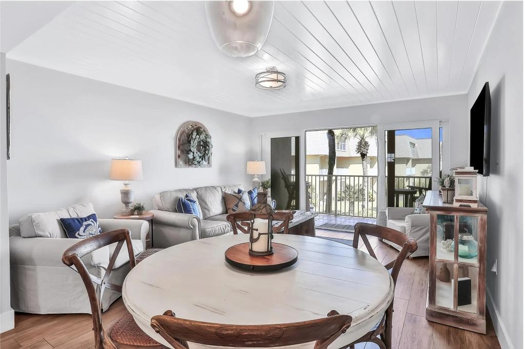 Coquina Cottage B203, Beautiful Condo rental in St. Augustine has 2 bedrooms, 2 bathrooms, 6 sleeps, 1 minimum stay Condo for rent in St. Augustine Florida with the amenities and near by attractions , Air Conditioning, Balcony, Beachfront, Communal Pool, Deck/Patio, Free WiFi, Internet, Linens Provided, Ocean View, Oceanfront, Parking, Water View, Waterfront, Coffee Maker , Dishes & Utensils, Dishwasher, Hair Dryer , Ice Maker, Iron & Board , Living Room, Microwave, Oven, Refrigerator, Stove, Toaster, Antiquing, Basketball court, Bird watching, Boating, Fishing, Kayaking, laundromat, Outlet shopping, Surfing, Swimming, Wildlife viewingGames, Fenced pool, Cookware, Gas Grill, Deadbolt Lock, Emergency Exit Route, Fishing Surf, Golf Optional, Pier Fishing, Tennis, Themes (Family-Historic-Luxury-Romantic)