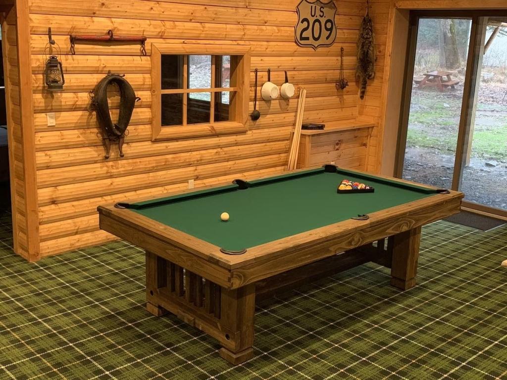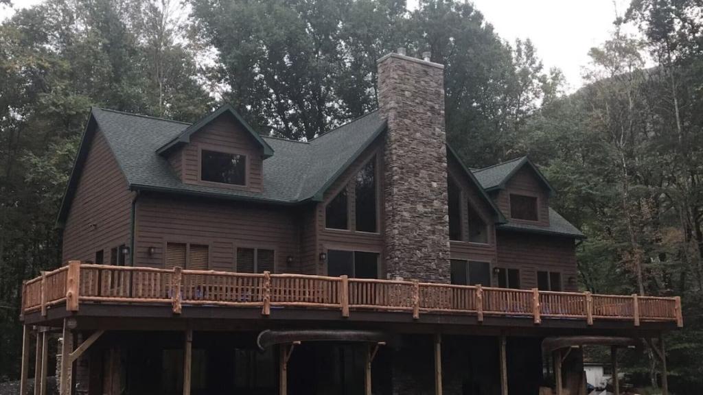 BIG POCONO LODGE “Largest Home @ Camelback”, Beautiful House rental in Tannersville has 9 bedrooms, 5 bathrooms, 24 sleeps, 1 minimum stay House for rent in Tannersville Pennsylvania with the amenities and near by attractions , Air Conditioning, Fireplace, Free WiFi, Full Kitchen, Game Room, Heating, Hot Tub, Internet, Kid Friendly, Linens Provided, Managed by Owner, Non-Smoking, Parking, Pet Friendly, Pool Table, Water View, Wireless Internet, Washing Machine, Kitchen, Fire extinguisher, Smoke detector, Carbon-monoxide detector, Exterior lighting, Mountain View, Carbon monoxide detector, Blender, Microwave, Telephone, Cable/Satellite TV, DVD Player, Outdoor Grill, Television, Ceiling Fans, Freezer, Oven, Toaster, Coffee Maker , Hair Dryer , Refrigerator, Washer/Dryer , Dishes & Utensils, Iron & Board , Stove, Dishwasher, Clothes Dryer, Dining Area, Living Room, Kettle, Shampoo, Hangers, Microwave/Air Fryer, Swimming, Outlet shopping, Winery tours, Fishing, Gambling casinos, Bird watching, Surfing, Water sports, Ecotourism, Boating, Museums, Water parks, Health/beauty spa, Zoo, Horseback riding, Antiquing, Paddle boating, Shopping, Sledding, Wildlife viewing, Basketball court, Cross country skiing, Cycling, Golf, Hiking, Hunting, Ice skating, Jet skiing, Kayaking, Mountain biking, Mountain climbing, Parasailing, Rafting, Rock climbing, Sailing, Scuba diving or snorkeling, Skiing, Snorkeling, Snowboarding, Snowmobiling, Water skiing, Water tubing, Wind-surfing, Hospital, laundromat, WiFi, Towels available, Bed linen available, Wood burning stove, Barbecue (grill), Dishes and utensils, Dining table, coffee machine, Ice machine, Swimming pool and spa, Outdoor fireplace, Outdoor furniture, Golf course, Skiing and snowboarding, Games, Books, TV, Smart TV, Cable or satellite TV, Stereo, Playroom, Travel cot, Baby high chair, Children's games, Toys, Children's dishes and utensils, Children's book, Wash clothes, Dryer, Iron and board, Automatic laundry, Security lock, First aid kit, Outdoor lighting, Emergency exit route, Fire department contact, River, Mountain, resort, Zoo , Thematic parks, Candle, Tubing, Scuba diving, Jet Ski, Boat, pedal boat, Ski area access (surcharge), Walk, Horse rides, Mountaineering, Caving, Beauty salons/spa, Wineries, Outlets, Antique dealers, Kayak, Windsurfing, Parasail, Ski , Snowboard, Cross-country skiing, Sled, snowmobile, Ski lift access, Golf course access (surcharge), basketball courts, Wildlife observation, Marina, Casinos