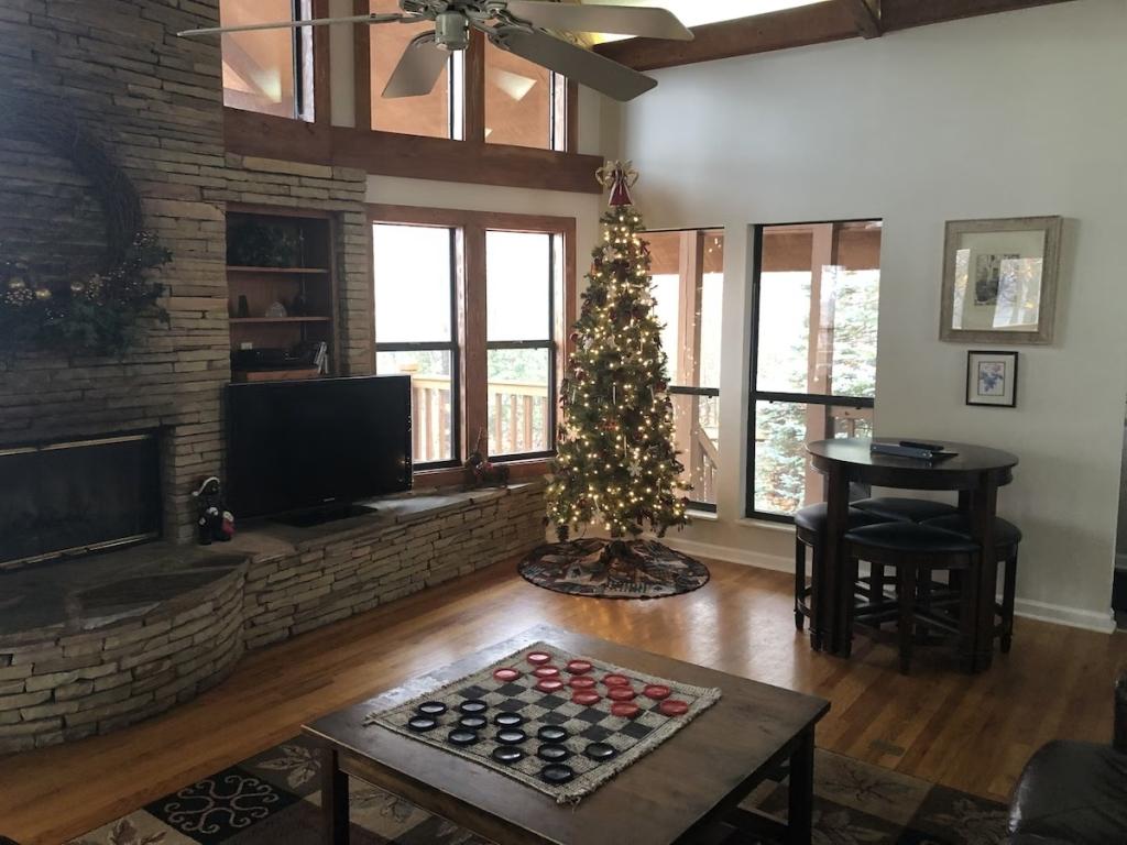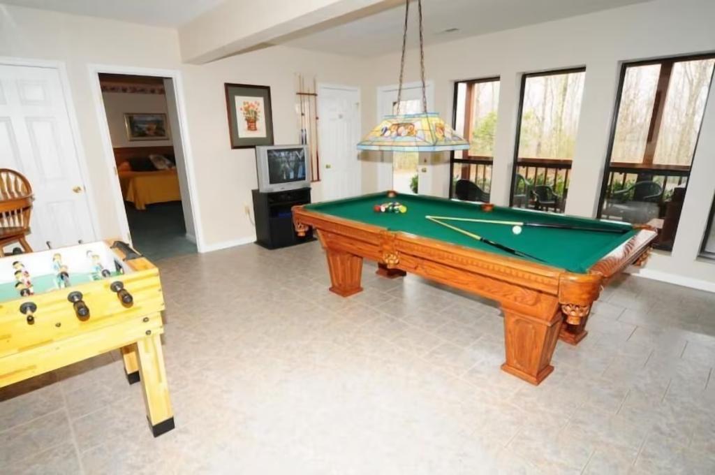 SKI VIEW LODGE - "STUNNING CHALET"- PERFECT LOCATION FOR FAMILY REUNIONS, RETREATS, & GATHERINGS., Beautiful Cabin rental in Gatlinburg has 6 bedrooms, 6 bathrooms, 16 sleeps, 1 minimum stay Cabin for rent in Gatlinburg Tennessee with the amenities and near by attractions , Air Conditioning, Carbon monoxide detector, Fire extinguisher, Fireplace, Free WiFi, Heating, Hot Tub, Internet, Kitchen, Linens Provided, Mountain View, Outdoor Pool, Parking, Pool Table, Smoke detector, Towels Provided, Basic Soaps, Blender, Dishwasher, DVD Player, Hair Dryer , Microwave, Oven, Refrigerator, Stove, Television, Toaster, Toilet Paper, Bird watching, Cycling, Fishing, Golf, Ice skating, Mountain biking, Museums, Rafting, Shopping, Swimming, Water parks, Water skiingWi-Fi speed: 500 Mbps or more (for more than 6 people or 10 devices), Towels available, Bed linen available, Barbecue (grill), Kitchen with island, Dishes and utensils, Dining table, coffee machine, Ice machine, Lobster pot, Shared pool, Outdoor furniture, Games, Smart TV, Cable or satellite TV, Video games, Video library, Stereo, Playroom, Foosball, Children's games, Wash clothes, Dryer, Iron and board, Security lock, First aid kit, Outdoor lighting, Emergency exit route, Mountain, Village, Thematic parks, Tubing, Kayak, Ski, Snowboard, Cross-country skiing, Sled, Walk, Horse rides, Mountaineering, Beauty salons/spa, Wineries, Outlets, Wildlife observation, Long-term stays accepted, Minimum age for renters