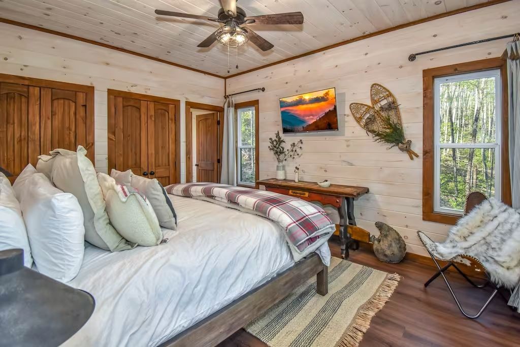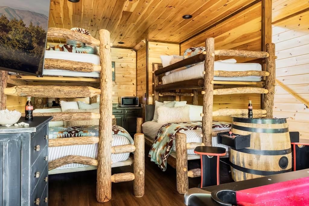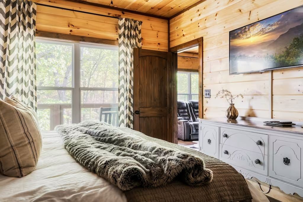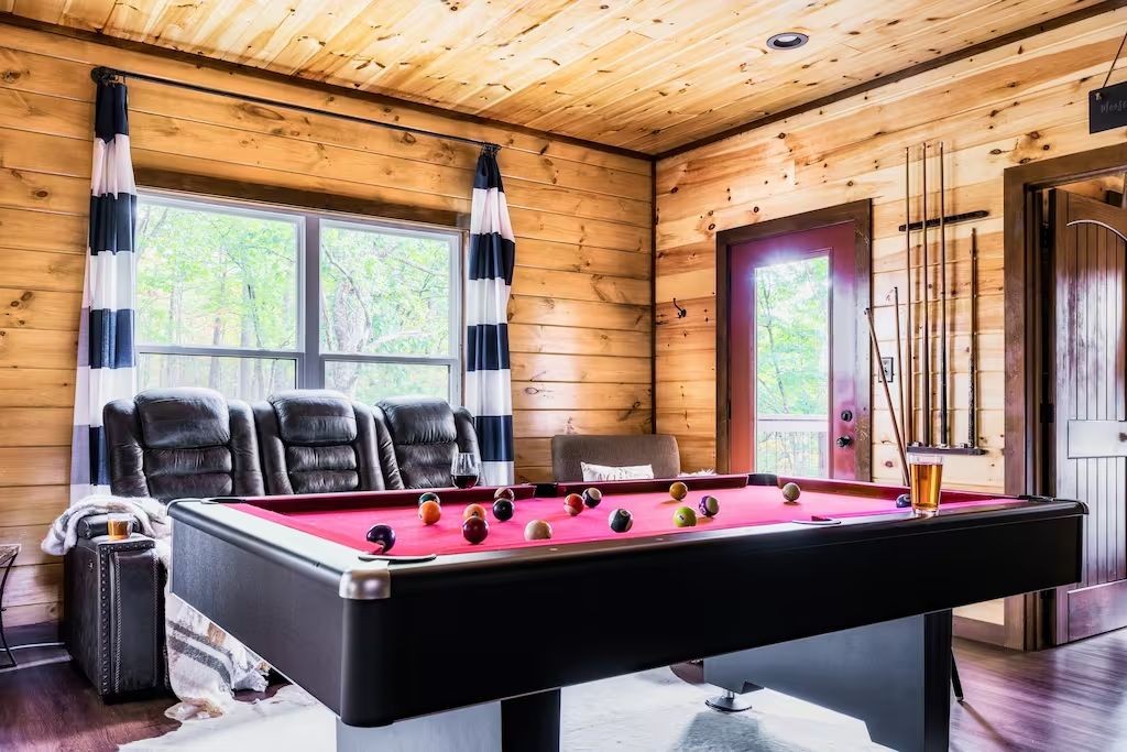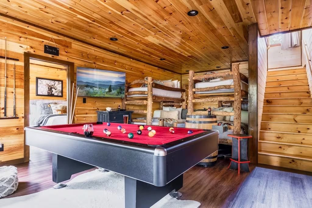 3 King Beds 3.5 Bath Cabin/Hot Tub/Pool Table, Beautiful Cabin rental in Sevierville has 3 bedrooms, 3.5 bathrooms, 12 sleeps, 1 minimum stay Cabin for rent in Sevierville Tennessee with the amenities and near by attractions , Air Conditioning, Balcony, Carbon monoxide detector, Children allowed, Deck/Patio, Fire extinguisher, Fireplace, Free WiFi, Full Kitchen, Game Room, Heating, Hot Tub, Internet, Kitchen, Linens Provided, Managed by Owner, Mountain View, No Smoking, Parking, Pool Table, Smoke detector, Towels Provided, Washing Machine, Basic Soaps, Cable/Satellite TV, Ceiling Fans, Clothes Dryer, Coffee Maker , Dining Area, Dishes & Utensils, Dishwasher, First-aid kit, Freezer, Hair Dryer , Hangers, Heater, Iron & Board , Microwave, Outdoor Grill, Oven, Refrigerator, Shampoo, Bird watching, Health/beauty spa, Horseback riding, Mountain biking, Mountain climbing, Rock climbing, Wildlife viewing, Wind-surfingBath, Terra Pure shampoo, Terra Pure conditioner, Terra Pure body soap, Hot water, Essentials, Bed linen, Extra pillows and blankets, Room-darkening blinds, Clothes storage: walk-in wardrobe, wardrobe and chest of drawers, Arcade games, Life-size games, Folding or convertible high chair – always at the listing, Security cameras on property, Dedicated workspace, Stainless steel induction cooker, Stainless steel oven, Baking sheet, Rice cooker, Barbecue utensils, Dining table, Private entrance, Firepit, Private back garden – Not fully fenced, Outdoor furniture, Long-term stays allowed, Self check-in, Smart lock