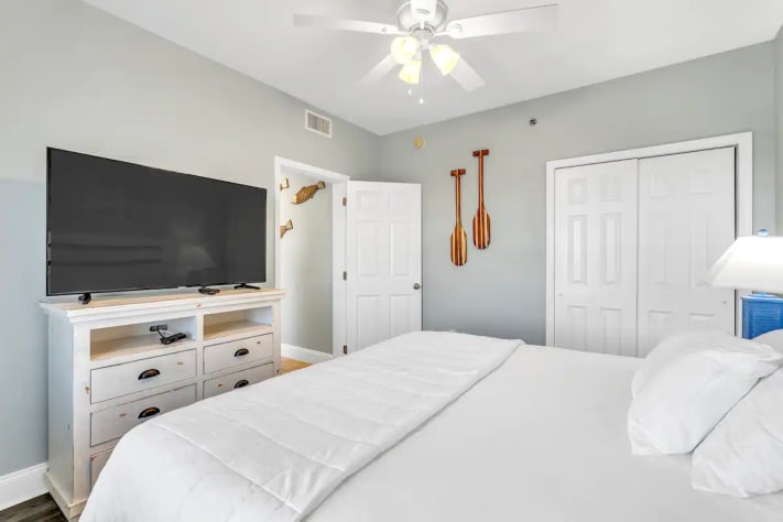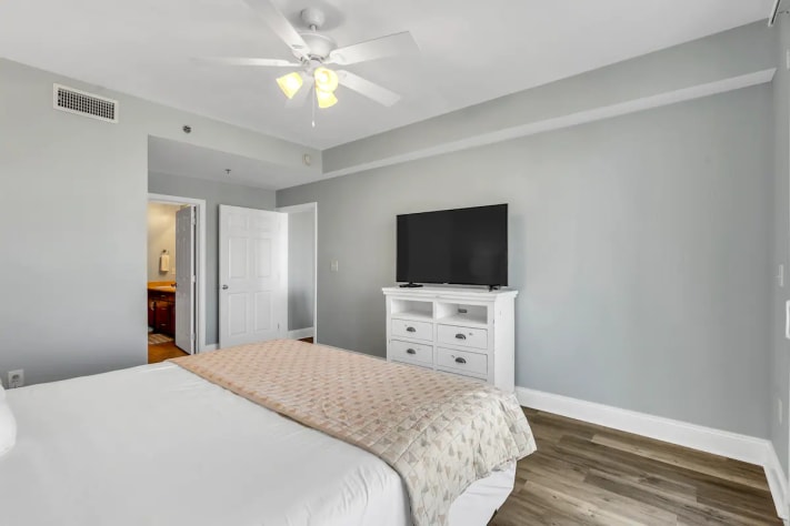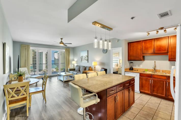 Laketown Wharf 508 3/2 Oceanview, Beautiful Condo rental in Panama City Beach has 3 bedrooms, 2 bathrooms, 8 sleeps, 3 minimum stay Condo for rent in Panama City Beach Florida with the amenities and near by attractions , Air Conditioning, Balcony, Paper Towels, Beach View, Communal Pool, Deck/Patio, Elevator, Fitness Room , Free WiFi, Full Kitchen, Heated Pool, Heating, Hot Tub, Indoor Pool, Internet, Linens Provided, Managed by Owner, No Pets Allowed, Ocean View, Outdoor Shower, Parking, Porch / Veranda, Towels Provided, Wireless Internet, Washing Machine, Kitchen, Swimming pool, Fire extinguisher, Children allowed, No Smoking, No parties/events, Smoke detector, Carbon-monoxide detector, Exterior lighting, Carbon monoxide detector, Outdoor Pool, Blender, Microwave, Cable/Satellite TV, Outdoor Grill, Television, Ceiling Fans, Freezer, Oven, Coffee Maker , Hair Dryer , Refrigerator, Washer/Dryer , Dishes & Utensils, Iron & Board , Stove, Dishwasher, Heater, First-aid kit, Clothes Dryer, Ice Maker, Dining Area, Basic Soaps, Toilet Paper, Living Room, Kettle, Shampoo, Microwave/Air Fryer, Ironing Board, Swimming, Surfing, Water sports, Boating, Health/beauty spa, Antiquing, Paddle boating, Shopping, Sledding, Whale watching, Cycling, Water skiing, Water tubing, Wind-surfing, fitness center, 2 Bunk Beds, 2 King Beds , Queen sofa sleeper, Dining Table, Bathtub, Linens & Towels, Master bedroom Private Bathroom, Hot Tub/Heated Spa, Porch Furniture, Community Pool, BBQ Grill, Fully Equipped Kitchen, High Speed Internet Access, No Pets, Linens Included, Big Screen TV, Central Air Conditioning