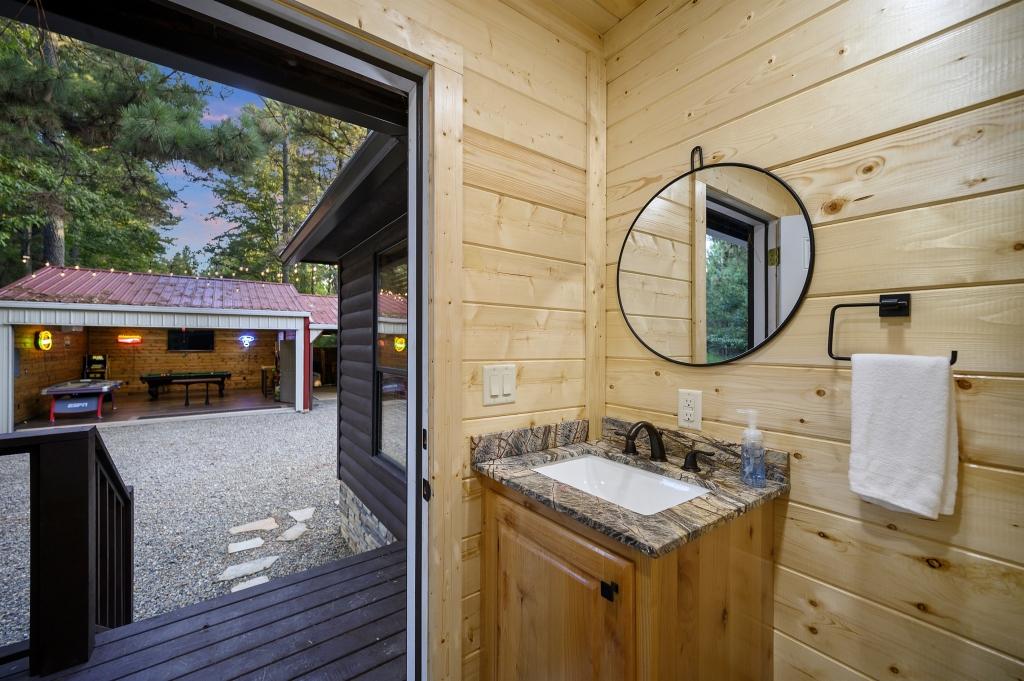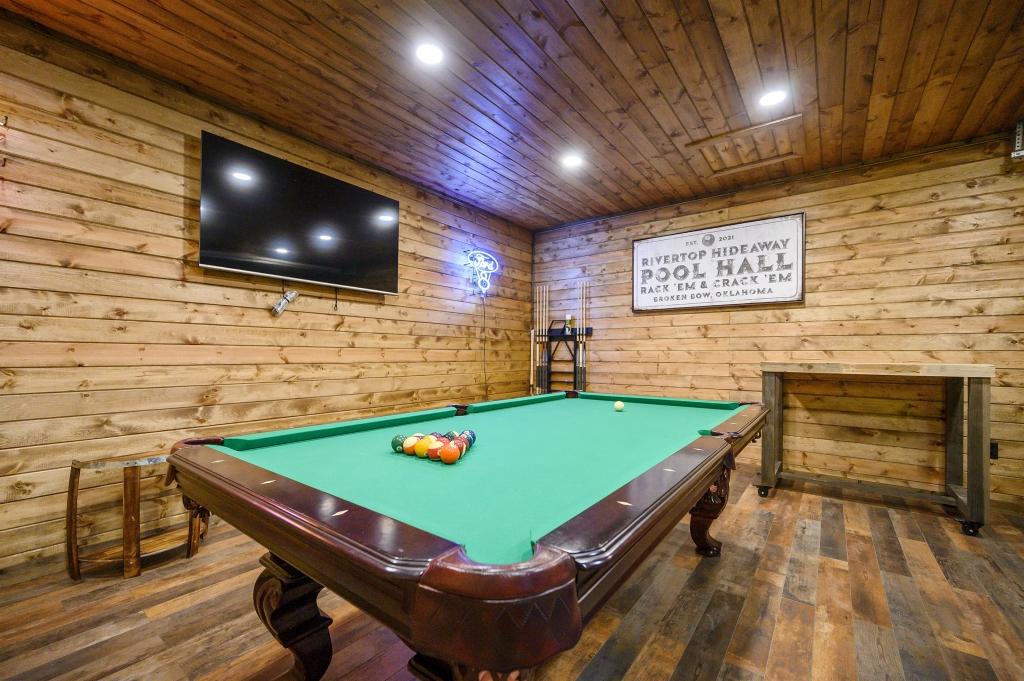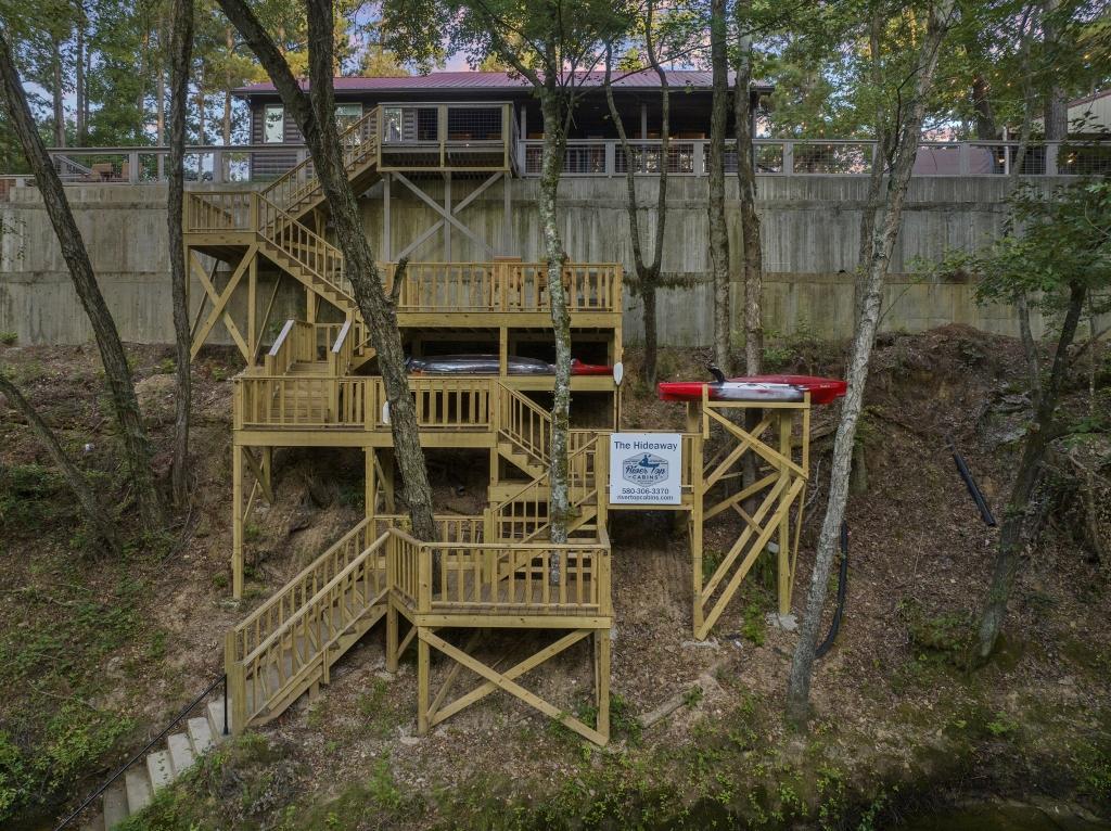 Hideaway, Beautiful Cabin rental in Broken Bow has 3 bedrooms, 3.5 bathrooms, 10 sleeps, 1 minimum stay Cabin for rent in Broken Bow Oklahoma with the amenities and near by attractions , Air Conditioning, Deck/Patio, Exterior lighting, Fire extinguisher, Fireplace, Free WiFi, Game Room, Heated Pool, Heating, Hot Tub, Internet, Kayak / Canoe, Kitchen, Linens Provided, No Smoking, Non-Smoking, Paper Towels, Parking, Pet Friendly, Pool Table, Private Pool, Smoke detector, Towels Provided, Washing Machine, Water View, Waterfront, Basic Soaps, Blender, Cable/Satellite TV, Ceiling Fans, Clothes Dryer, Coffee Grinder, Coffee Maker , Dining Area, Dishes & Utensils, Dishwasher, First-aid kit, Hair Dryer , Hangers, Ice Maker, Iron & Board , Living Room, Microwave, Mini Freezer, Outdoor Grill, Oven, Refrigerator, Shampoo, Stove, Television, Toaster, Toilet Paper, Antiquing, Boating, Fishing, Gambling casinos, Golf, Health/beauty spa, Hiking, Horseback riding, Kayaking, Museums, Paddle boating, Shopping, SwimmingRiver View, Rural, Firewood Provided, Private Entrance, Clothing Storage, Portable Fans, Baking Sheet, Wine Glasses, Pots & Pans, Fire Pit, Fenced Pool, Deadbolt Lock, Cleaning Products