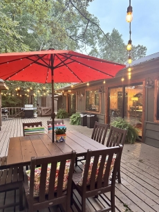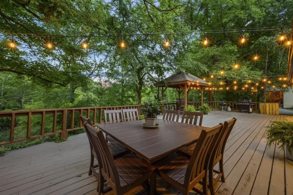 Joelle’s River House, Beautiful Cabin rental in Broken Bow has 4 bedrooms, 2 bathrooms, 8 sleeps, 1 minimum stay Cabin for rent in Broken Bow Oklahoma with the amenities and near by attractions , Air Conditioning, Balcony, Carbon monoxide detector, Deck/Patio, Exterior lighting, Fire extinguisher, Fireplace, Free WiFi, Game Room, Heated Pool, Heating, Hot Tub, Internet, Kayak / Canoe, Kitchen, Linens Provided, No Smoking, Non-Smoking, Paper Towels, Parking, Pet Friendly, Pool Table, Private Pool, Smoke detector, Towels Provided, Washing Machine, Water View, Waterfront, Basic Soaps, Blender, Cable/Satellite TV, Ceiling Fans, Clothes Dryer, Coffee Grinder, Coffee Maker , Dining Area, Dishes & Utensils, Dishwasher, First-aid kit, Hair Dryer , Hangers, Ice Maker, Iron & Board , Living Room, Microwave, Mini Freezer, Outdoor Grill, Oven, Refrigerator, Shampoo, Stove, Television, Toaster, Toilet Paper, Antiquing, Boating, Fishing, Gambling casinos, Golf, Health/beauty spa, Hiking, Horseback riding, Hunting, Kayaking, Museums, Paddle boating, Shopping, Swimming, Winery toursRiver View, Rural, Firewood Provided, Private Entrance, Clothing Storage, Portable Fans, Baking Sheet, Wine Glasses, Pots & Pans, Fire Pit, Fenced Pool, Deadbolt Lock, Cleaning Products, Terrace, Lawn/Garden, Marina