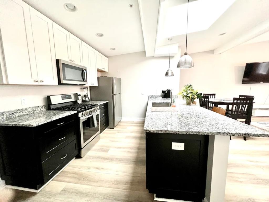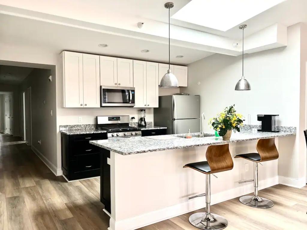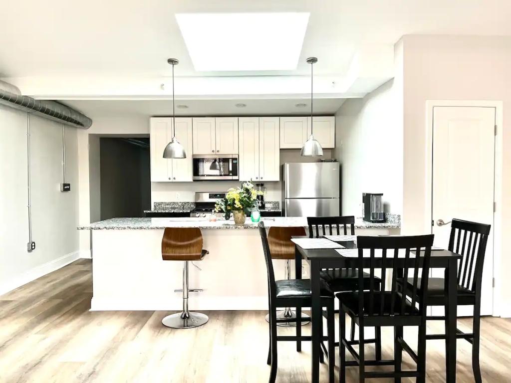Beautiful skylight Inner Harbor Downtown Apartment, Beautiful Apartment rental in Baltimore has 2 bedrooms, 2 bathrooms, 5 sleeps, 5 minimum stay Apartment for rent in Baltimore Maryland with the amenities and near by attractions , Air Conditioning, Carbon monoxide detector, Fire extinguisher, Free WiFi, Full Kitchen, Heating, Kitchen, Linens Provided, Parking, Smoke detector, Towels Provided, Washing Machine, Basic Soaps, Blender, Ceiling Fans, Coffee Maker , Dishes & Utensils, Dishwasher, Freezer, Hair Dryer , Hangers, Iron & Board , Microwave, Oven, Refrigerator, Shampoo, Television, Washer/Dryer Cleaning products, Conditioner, Hot water, Clothes drying rack, Mosquito net, Ethernet connection, Books and reading material, Security cameras on property, Dedicated workspace, Cooker, Wine glasses, Dining table, Private entrance, Luggage drop-off allowed, Long-term stays allowed(Allow stays of 28 days or more), Self check-in, Building staff