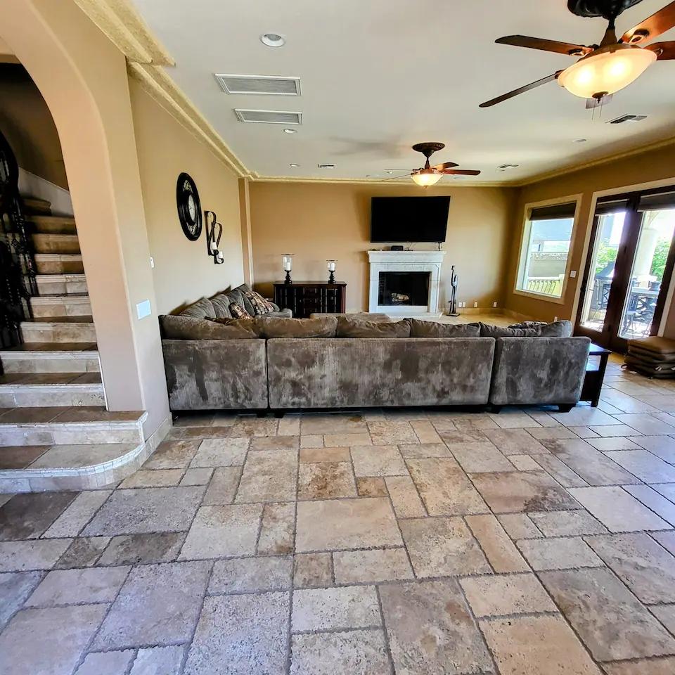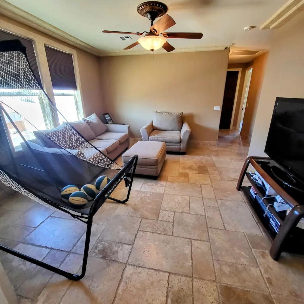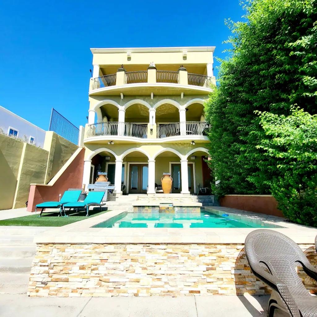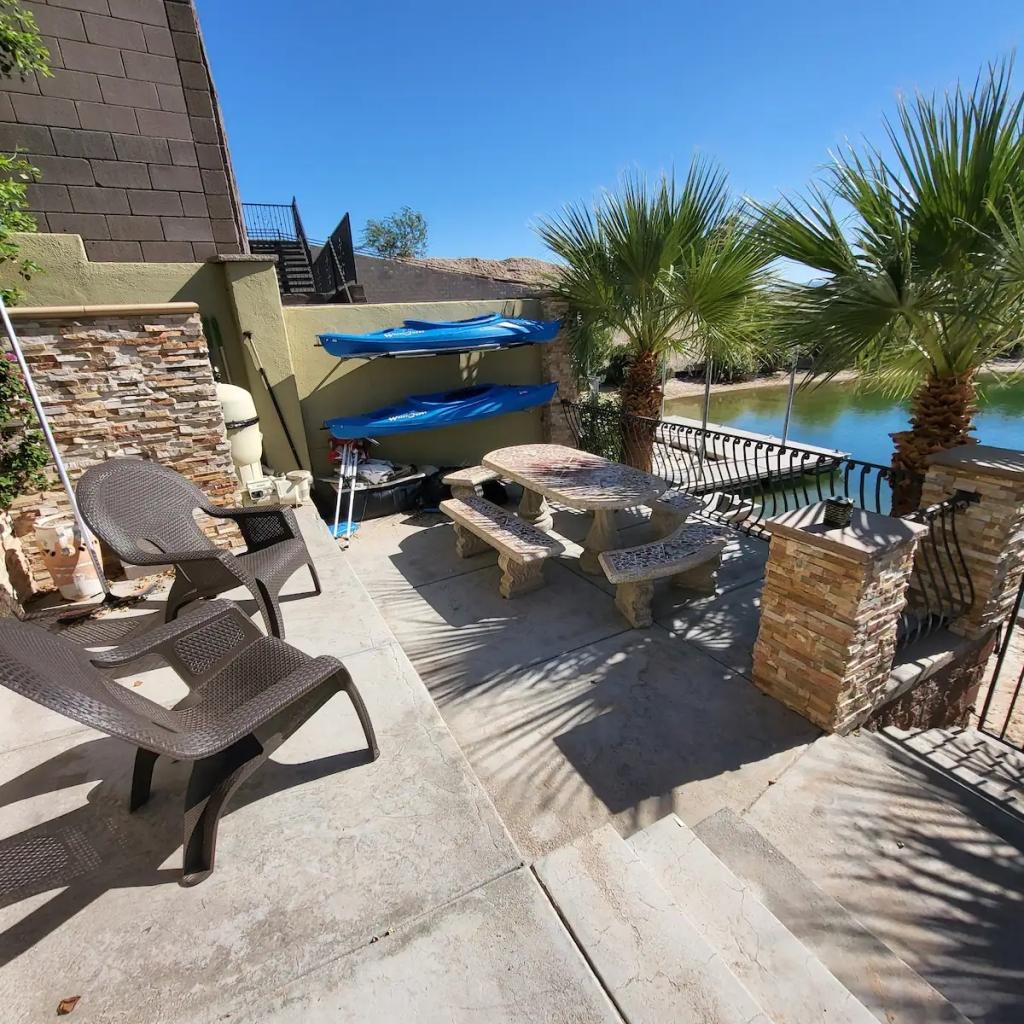 Bullhead City Riverfront Mansion - Family-friendly river mansion endless amenities, Beautiful House rental in Bullhead City has 7 bedrooms, 5.5 bathrooms, 14 sleeps, 2 minimum stay House for rent in Bullhead City Arizona with the amenities and near by attractions , Air Conditioning, Balcony, Beach View, Carbon monoxide detector, Children Welcome, Deck/Patio, Dock/Boat Slip, Fire extinguisher, Fitness Room , Free WiFi, Full Kitchen, Game Room, Heating, Hot Tub, Internet, Lake View, Linens Provided, Managed by Owner, Mountain View, No parties/events, No Pets Allowed, No Smoking, Parking, Pool Table, Private Pool, Smoke detector, Swimming pool, Towels Provided, Water View, Basic Soaps, Blender, Cable/Satellite TV, Ceiling Fans, Coffee Maker , Dining Area, Dishes & Utensils, Dishwasher, First-aid kit, Freezer, Hair Dryer , Hangers, Iron & Board , Microwave, Outdoor Grill, Oven, Refrigerator, Shampoo, Stove, Toaster, Toilet Paper, Antiquing, Bird watching, Boating, Ecotourism, Fishing, fitness center, Health/beauty spa, Hiking, Hospital, Jet skiing, Kayaking, laundromat, Mountain biking, Outlet shopping, Paddle boating, Parasailing, Rafting, Shopping, Ski privileges optional, Skiing, Snorkeling, Snowboarding, Snowmobiling, Surfing, Swimming, Water sports, Water tubing, Wildlife viewing, Wind-surfingDesert view, Courtyard view, River view, Marina view, Bath and showers available, Conditioner, Bidet(Master bedroom main floor), Laundry Room’s on Main and Third Floor, Extra pillows and blankets, Extra pillows and blankets, Clothes drying rack, Clothes storage: wardrobe and chest of drawers, HDTV with satellite and Roku, Games console: Nintendo Wii, Arcade games - Golden Tee and Basketball, Crib, Three family/living areas, Board games, Security cameras on property, Dedicated workspace, Plates, bowls, silverware, glasses, wine glasses, cups, Commercial gas stove with double oven, Baking sheet, Barbecue utensils Stainless Steel Gas barbeque grill with utensils, Formal dining table – Seat’s 10, Private fenced courtyard with outdoor table and chairs, Outdoor furniture, Beach essentials Beach/Pool essentials – Pool towels and umbrellas available, Kayak - 2 kayak’s and ores available, Private outdoor pebble tech pool and spa, Private sauna - Private indoor infrared sauna, Private Exercise room with tread mill and stationary bike, Cleaning available during stay At additional cost. Arrangements made with cleaner. Price agreed upon between guest and cleaner