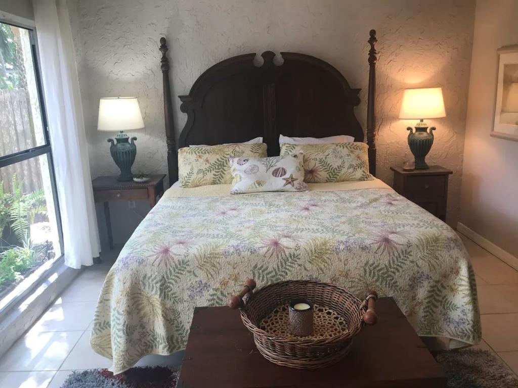Siesta Hideaway, Beautiful Apartment rental in Siesta Key has 1 bedrooms, 1 bathrooms, 2 sleeps, 1 minimum stay Apartment for rent in Siesta Key Florida with the amenities and near by attractions , Air Conditioning, Balcony, Deck/Patio, Fire extinguisher, Free WiFi, Full Kitchen, Heating, Kitchen, Linens Provided, Parking, Pet Friendly, Smoke detector, Towels Provided, Washing Machine, Basic Soaps, Cable/Satellite TV, Ceiling Fans, Coffee Maker , Dishes & Utensils, Hangers, Iron & Board , Microwave, Mini Freezer, Oven, Refrigerator, Shampoo, Television, Toaster, Toilet Paper, Washer/Dryer Cleaning products, Hot water, Extra pillows and blankets, Clothes storage, Ethernet connection, Dedicated workspace, Cooking basics, Cooker, Wine glasses, Baking sheet, Dining table, Private entrance, Garden, Single level home, Luggage drop-off allowed, Long-term stays allowed