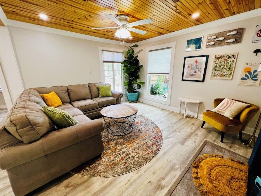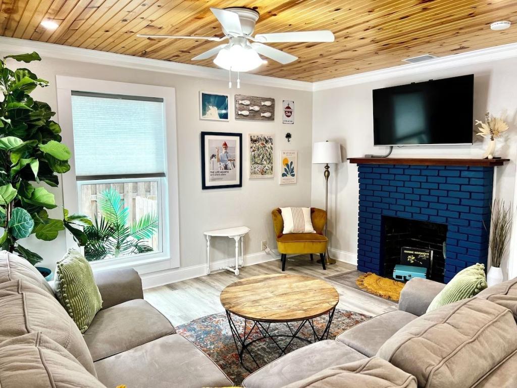 High Demand Vacation Area - Walk to EVERYTHING New Smyrna Beach!, Beautiful Bungalow rental in New Smyrna Beach has 2 bedrooms, 2 bathrooms, 6 sleeps, 2 minimum stay Bungalow for rent in New Smyrna Beach Florida with the amenities and near by attractions , Air Conditioning, Beach Chairs, Paper Towels, Deck/Patio, Free WiFi, Full Kitchen, Heating, Internet, Linens Provided, Managed by Owner, No Pets Allowed, Non-Smoking, Outdoor Shower, Parking, Towels Provided, Wireless Internet, Washing Machine, Kitchen, Children Welcome, Fire extinguisher, No Smoking, Smoke detector, Carbon-monoxide detector, Exterior lighting, Carbon monoxide detector, Blender, Microwave, Cable/Satellite TV, Outdoor Grill, Television, Ceiling Fans, Oven, Toaster, Coffee Maker , Hair Dryer , Refrigerator, Washer/Dryer , Dishes & Utensils, Iron & Board , Stove, Dishwasher, Heater, First-aid kit, Clothes Dryer, Dining Area, Basic Soaps, Toilet Paper, Living Room, Kettle, Shampoo, Hangers, Swimming, Outlet shopping, Winery tours, Fishing, Bird watching, Surfing, Water sports, Ecotourism, Boating, Museums, Water parks, Bay/sound, Health/beauty spa, Zoo, Antiquing, Paddle boating, Shopping, Wildlife viewing, Cycling, Golf, Hiking, Jet skiing, Kayaking, Parasailing, Sailing, Scuba diving or snorkeling, Snorkeling, Water skiing, Water tubing, Wind-surfing, Hospital, laundromatLobster pot, Fire Pit, Outdoor furniture, Downtown, Long-term renters welcome, Minimum age limit for renters, Marina, Ch ild's highchair, Travel crib