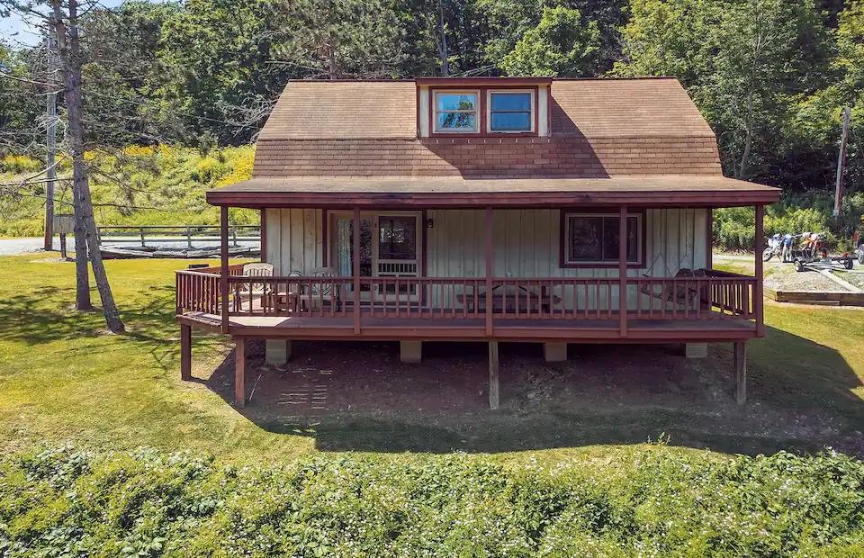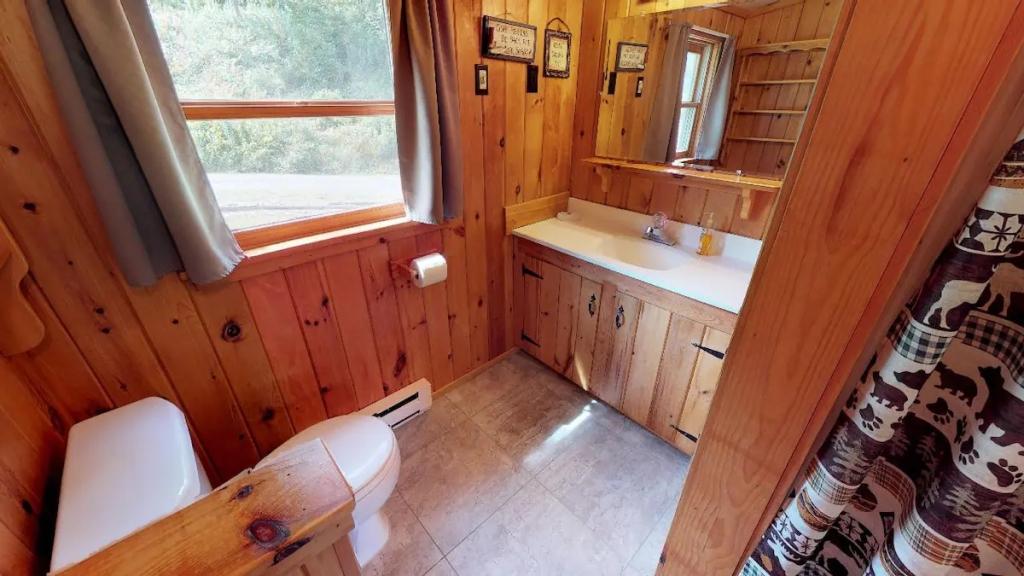Pine Cabin at Rough Cut Lodge, Beautiful Cabin rental in Gaines has 3 bedrooms, 1 bathrooms, 10 sleeps, 1 minimum stay Cabin for rent in Gaines Pennsylvania with the amenities and near by attractions , Air Conditioning, Balcony, Beach View, Carbon monoxide detector, Children Welcome, Deck/Patio, Fire extinguisher, Fireplace, Free WiFi, Heating, Kid Friendly, Kitchen, Linens Provided, Mountain View, Parking, Pet Friendly, Smoke detector, Towels Provided, Waterfront, Basic Soaps, Cable/Satellite TV, Ceiling Fans, Coffee Maker , Dining Area, Dishes & Utensils, Dishwasher, First-aid kit, Freezer, Hair Dryer , Hangers, Iron & Board , Kettle, Microwave, Oven, Television, Toaster, Toilet Paper, Washer/Dryer Cleaning products, Hot water, Extra pillows and blankets, Extra pillows and blankets, Ethernet connection, Portable fans, Exterior security cameras on property, Dedicated workspace, Cooking basics, GE gas cooker, Wine glasses, Baking sheet, Dining table, Launderette nearby, Resort access, Outdoor furniture, BBQ grill, Long-term stays allowed, Luggage drop-off allowed, Self check-in, River view