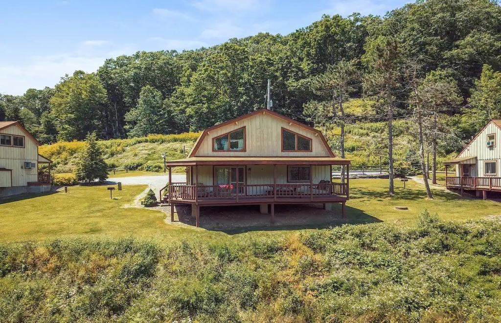 Hickory Cabin at Rough Cut Lodge, Beautiful Cabin rental in Gaines has 3 bedrooms, 1 bathrooms, 10 sleeps, 1 minimum stay Cabin for rent in Gaines Pennsylvania with the amenities and near by attractions , Air Conditioning, Balcony, Beach View, Carbon monoxide detector, Children allowed, Children Welcome, Deck/Patio, Fire extinguisher, Fireplace, Free WiFi, Heating, Kid Friendly, Kitchen, Linens Provided, Mountain View, Paper Towels, Parking, Pet Friendly, Pool Table, Smoke detector, Towels Provided, Waterfront, Cable/Satellite TV, Ceiling Fans, Coffee Maker , Dishes & Utensils, First-aid kit, Hair Dryer , Hangers, Iron & Board , Kettle, Microwave, Oven, Refrigerator, Television, Toaster, Toilet PaperRiver view, Cleaning products, Hot water, Paid washer, Paid dryer, Essentials, Extra pillows and blankets, Room-darkening blinds, Clothes storage, Ethernet connection, Climbing wall, Cot, Travel cot, High chair, Portable fans, Exterior security cameras on property, Dedicated workspace, Frigidaire gas cooker, Wine glasses, Barbecue utensils, Dining table, Private entrance, Resort access, BBQ grill