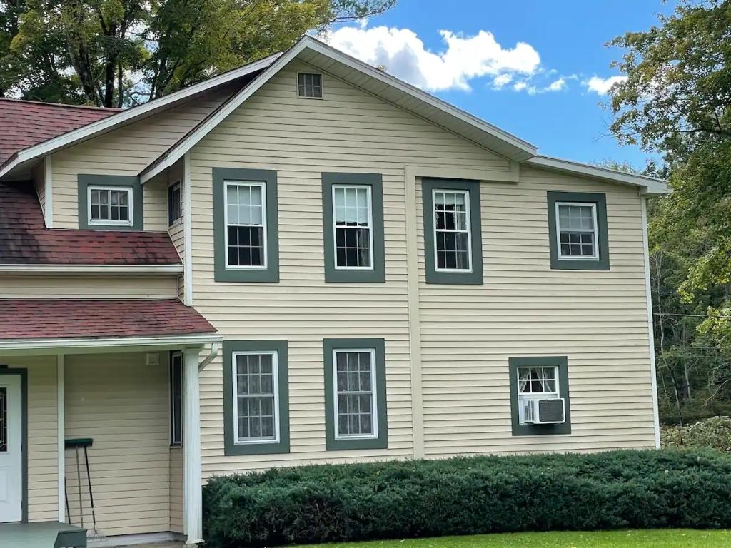 Family Retreat walk to Pine Creek PA Grand Canyon, Beautiful Cabin rental in Gaines has 4 bedrooms, 2.5 bathrooms, 12 sleeps, 1 minimum stay Cabin for rent in Gaines Pennsylvania with the amenities and near by attractions , Air Conditioning, Balcony, Beach View, Carbon monoxide detector, Children allowed, Children Welcome, Deck/Patio, Fire extinguisher, Fireplace, Free WiFi, Heating, Kid Friendly, Kitchen, Linens Provided, Mountain View, Paper Towels, Parking, Pet Friendly, Pool Table, Smoke detector, Towels Provided, Waterfront, Cable/Satellite TV, Ceiling Fans, Coffee Maker , Dishes & Utensils, First-aid kit, Hair Dryer , Hangers, Iron & Board , Kettle, Microwave, Oven, Refrigerator, Television, Toaster, Toilet PaperRiver view, Cleaning products, Hot water, Essentials, Extra pillows and blankets, Room-darkening blinds, Clothes storage, Ethernet connection, Climbing wall, Cot, Travel cot, High chair, Portable fans, Exterior security cameras on property, Dedicated workspace, Frigidaire gas cooker, Wine glasses, Barbecue utensils, Dining table, Private entrance, Resort access, BBQ grill