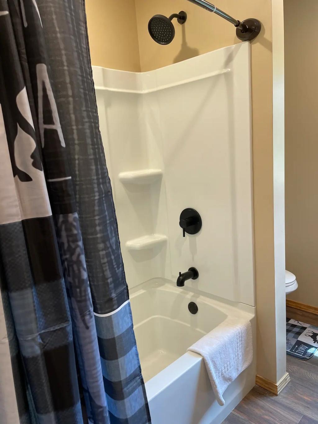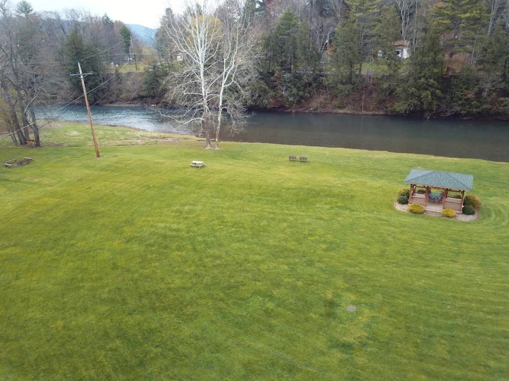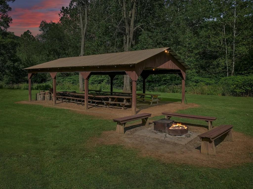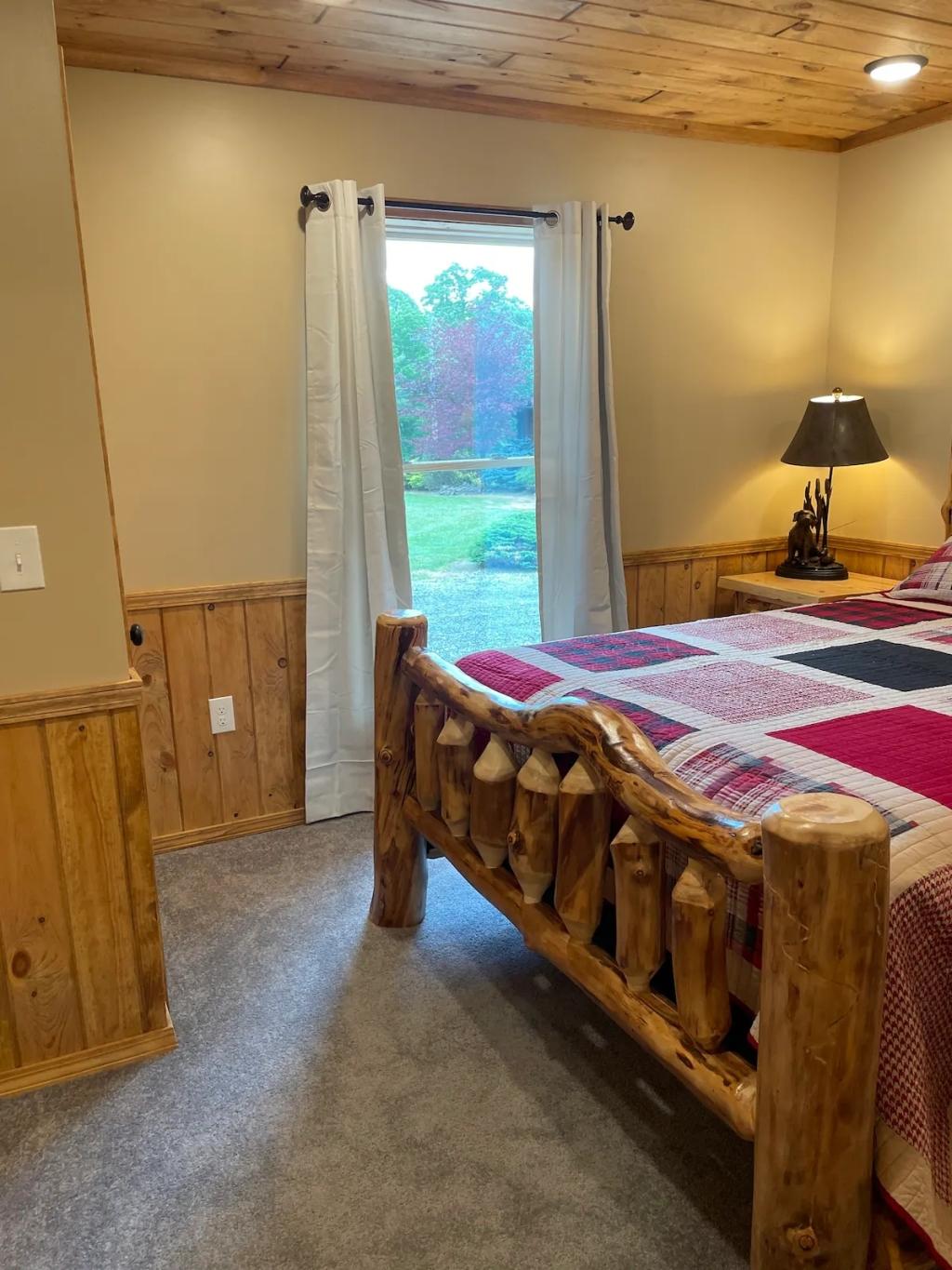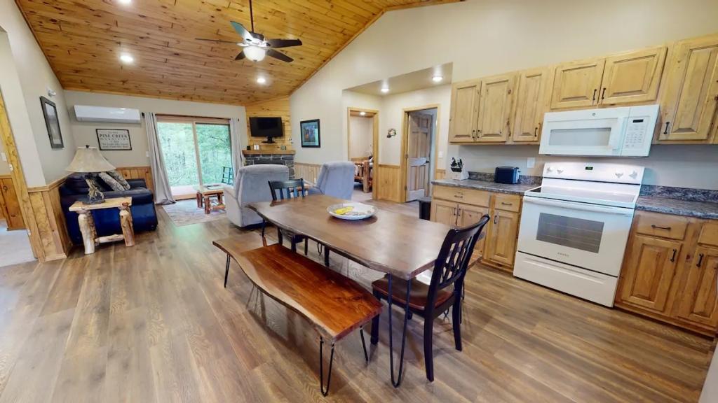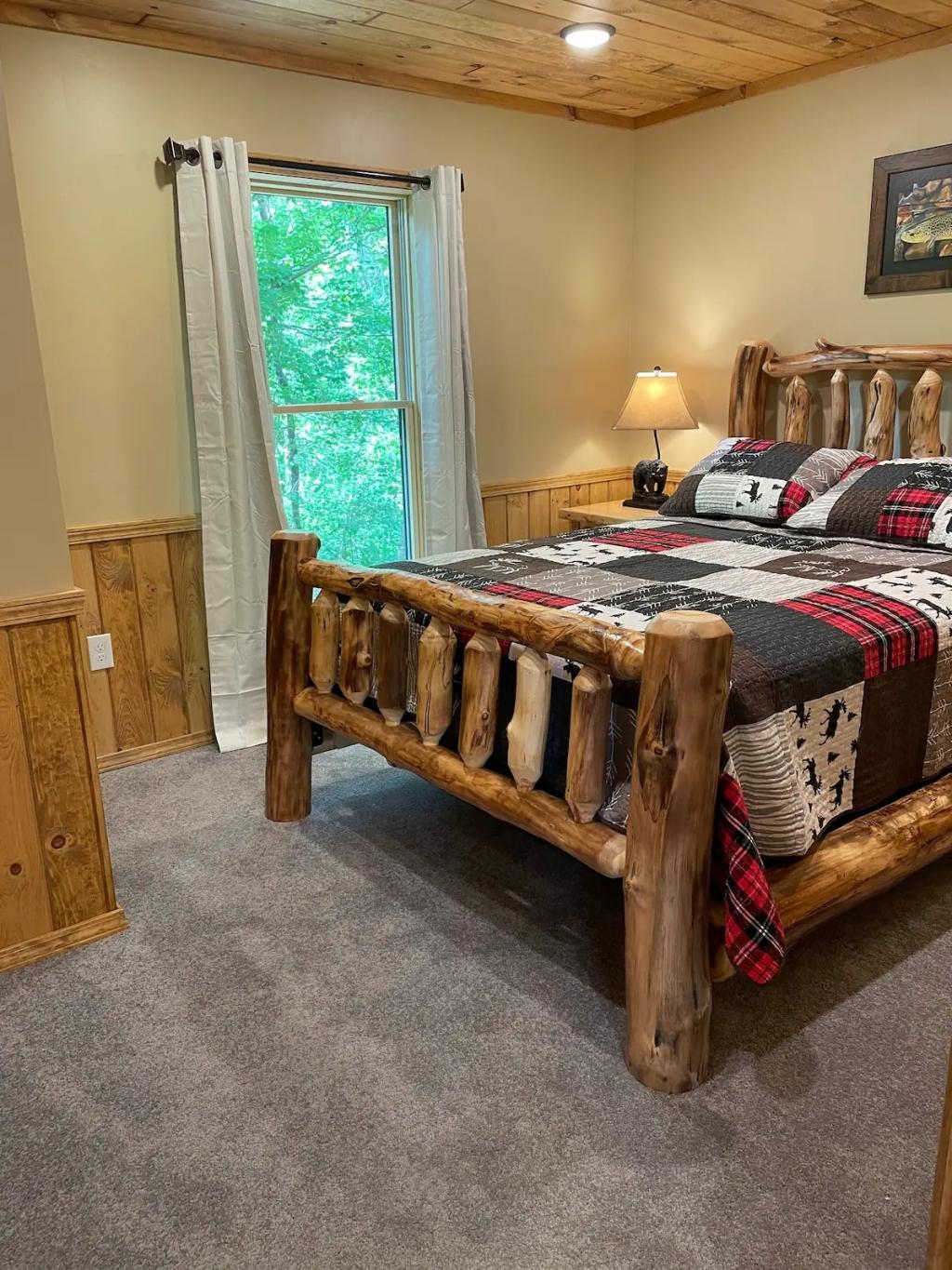 Radiant floors, Gas Fireplace & Private Porch, Beautiful Cabin rental in Gaines has 4 bedrooms, 2 bathrooms, 8 sleeps, 1 minimum stay Cabin for rent in Gaines Pennsylvania with the amenities and near by attractions , Air Conditioning, Balcony, Carbon-monoxide detector, Deck/Patio, Fire extinguisher, Fireplace, Free WiFi, Heating, Kitchen, Mountain View, Parking, Pet Friendly, Smoke detector, Waterfront, Cable/Satellite TV, Coffee Maker , Dining Area, Dishes & Utensils, First-aid kit, Hair Dryer , Hangers, Iron & Board , Microwave, Oven, RefrigeratorRiver view, Hot water, Paid washer – In building, Paid dryer – In building, Room-darkening blinds, Cot, Travel cot, Children’s books and toys, High chair, Board games, Outdoor playground, Exterior security cameras on property, Dedicated workspace, Cooking basics, GE electric cooker, Private entrance, Resort access, Shared back garden – Not fully fenced, Firepit, BBQ grill, Self check-in