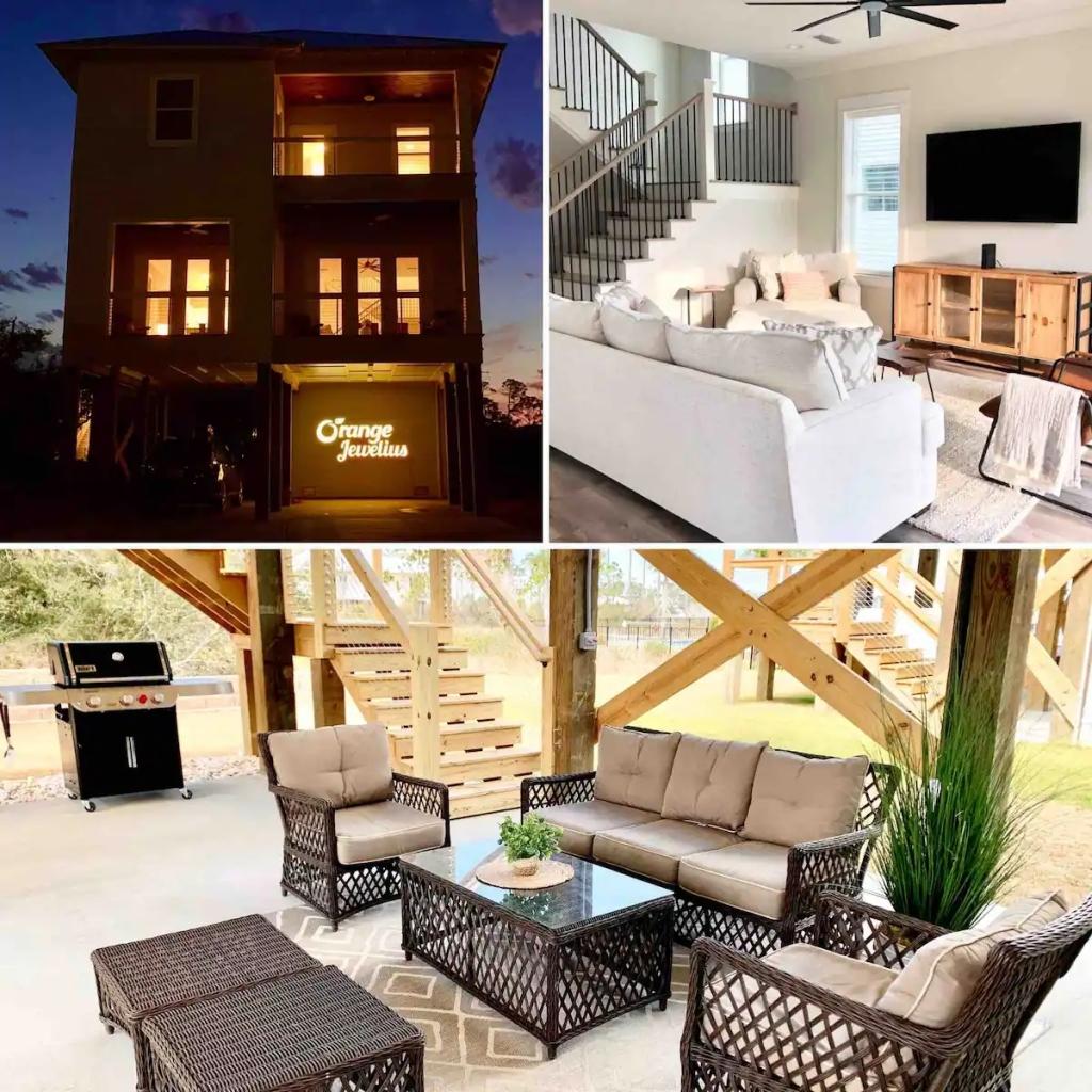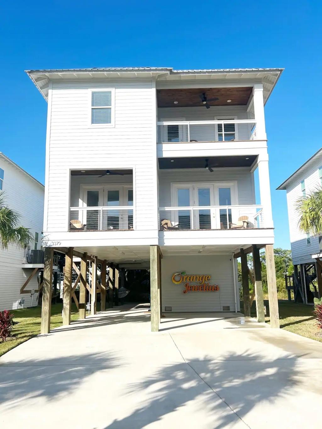 Sleeps 10! Lovely Beach House in Orange Beach AL!, Beautiful House rental in Orange Beach has 4 bedrooms, 3.5 bathrooms, 10 sleeps, 1 minimum stay House for rent in Orange Beach Alabama with the amenities and near by attractions , Air Conditioning, Balcony, Beach Chairs, Beach View, Beachfront, Carbon monoxide detector, Children Welcome, Deck/Patio, Fire extinguisher, Free WiFi, Heating, Kitchen, Linens Provided, Managed by Owner, No parties/events, No Smoking, Ocean View, Oceanfront, Outdoor Pool, Parking, Pet Friendly, Smoke detector, Towels Provided, Washing Machine, Water View, Waterfront, Basic Soaps, Blender, Cable/Satellite TV, Ceiling Fans, Coffee Maker , Dining Area, Dishes & Utensils, Dishwasher, Freezer, Hair Dryer , Hangers, Ice Maker, Iron & Board , Microwave, Outdoor Grill, Oven, Refrigerator, Shampoo, Television, Toaster, Toilet Paper, Washer/Dryer , Antiquing, Basketball court, Boating, Fishing, fitness center, Golf, Health/beauty spa, Hospital, Kayaking, laundromat, Outlet shopping, Paddle boating, Parasailing, Rafting, Sailing, Shopping, Snowboarding, Snowmobiling, Surfing, Swimming, Water parks, Water skiing, Water sports, Water tubing, Wind-surfingMarina view, Pool view, Cleaning products, Hot water, Extra pillows and blankets, Clothes storage, HDTV with Amazon Prime Video, Disney+, Netflix, Books and reading material, Children’s tableware Board games, Cooking basics, Stainless steel cooker, Wine glasses, Baking sheet, Barbecue utensils, Dining table, Shared back garden, Outdoor furniture, Hammock, Beach essentials, Sun loungers, Luggage drop-off allowed, Long-term stays allowed, Self check-in, Keypad, Housekeeping – available at extra cost