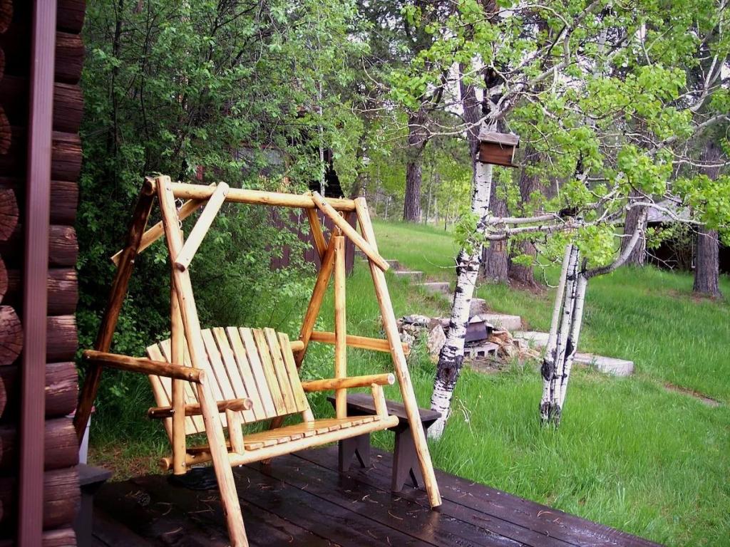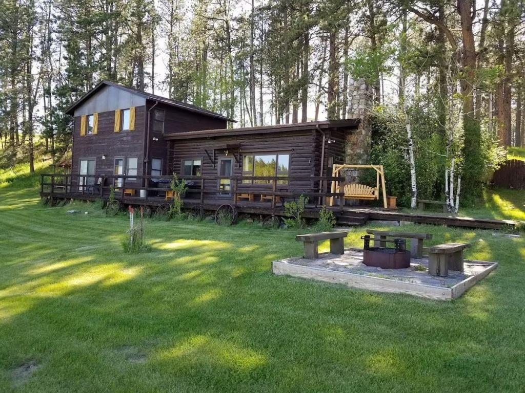 Sky View Log Cabin- Off the beaten trail yet close to all the main attractions!, Beautiful Cabin rental in Custer has 5 bedrooms, 2 bathrooms, 11 sleeps, 1 minimum stay Cabin for rent in Custer South Dakota with the amenities and near by attractions , Air Conditioning, Carbon monoxide detector, Children allowed, Fire extinguisher, Fireplace, Heating, Internet, Kitchen, Linens Provided, Mountain View, No Pets Allowed, No Smoking, Paper Towels, Parking, Smoke detector, Towels Provided, Washing Machine, Basic Soaps, Blender, Coffee Maker , Dining Area, Dishes & Utensils, Dishwasher, Hair Dryer , Ironing Board, Kettle, Microwave, Outdoor Grill, Oven, Refrigerator, Shampoo, Telephone, Toaster, Toilet Paper, Washer/Dryer , Basketball court, Bird watching, Boating, Fishing, Golf, Horseback riding, Hunting, Ice skating, Mountain biking, Mountain climbing, Swimming, Winery toursToys/games, External space, Cooktop, Pots, pans and kitchen utensils, Dining table, Wood burning stove, Garden