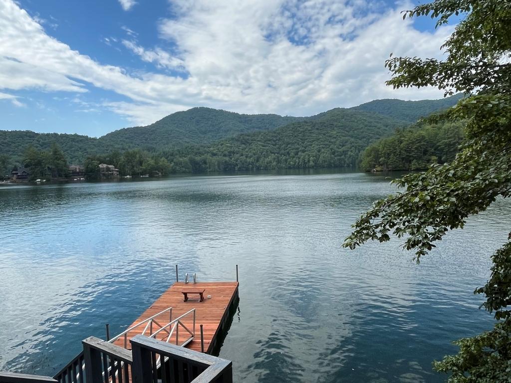 Lakefront Cottage on Lake Santeetlah, Beautiful Cottage rental in Robbinsville has 3 bedrooms, 3 bathrooms, 6 sleeps, 4 minimum stay Cottage for rent in Robbinsville North Carolina with the amenities and near by attractions , Air Conditioning, Deck/Patio, Dock/Boat Slip, Free WiFi, Full Kitchen, Heating, Internet, Lake View, Lakefront, Linens Provided, Managed by Property Manager, No Pets Allowed, Non-Smoking, Parking, Porch / Veranda, Screen Porch, Towels Provided, Water View, Waterfront, Wireless Internet, Washing Machine, Kitchen, Children Welcome, Children allowed, No Smoking, No parties/events, Smoke detector, Exterior lighting, Mountain View, Blender, Microwave, Telephone, Cable/Satellite TV, Outdoor Grill, Television, Ceiling Fans, Oven, Toaster, Coffee Maker , Hair Dryer , Refrigerator, Washer/Dryer , Dishes & Utensils, Iron & Board , Stove, Dishwasher, Heater, Ice Maker, Dining Area, Waffle Iron, Swimming, Fishing, Gambling casinos, Bird watching, Water sports, Boating, Museums, Horseback riding, Antiquing, Shopping, Basketball court, Hiking, Jet skiing, Kayaking, Mountain biking, Rafting, Water tubing
