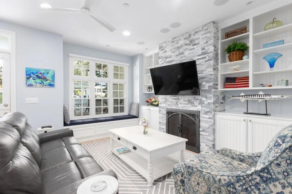 High End Coronado Beach House, Beautiful House rental in Coronado has 3 bedrooms, 2.5 bathrooms, 6 sleeps, 1 minimum stay House for rent in Coronado California with the amenities and near by attractions , Air Conditioning, Beach Chairs, Carbon monoxide detector, Exterior lighting, Fire extinguisher, Fireplace, Free WiFi, Game Room, Internet, Kitchen, Linens Provided, Paper Towels, Parking, Smoke detector, Towels Provided, Washing Machine, Wireless Internet, Basic Soaps, Blender, Coffee Grinder, Coffee Maker , Dishes & Utensils, Dishwasher, Hair Dryer , Ice Maker, Iron & Board , Kettle, Microwave, Oven, Refrigerator, Shampoo, Stove, Television, Toaster, Toilet PaperGrill, Dining table, Spa whirlpool, Fire pit, Outdoor furniture, Beach towels, Games, Books, Smart TV, Satellite / cable, Video games, Stereo, Games for kids, Toys, Books for kids, Dryer, Deadbolt lock, First aid kit, Fenced yard, Emergency exit route, Near the ocean, Village, Resort, Housekeeper optional, Meal delivery