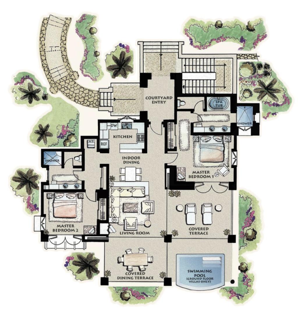 Casa Contessa is a professionally designed and built villa with guest privacy in mind with all 5 bedrooms on one level. Duel masters suites are on opposite sides of the villa with no connected bedrooms. Both masters offer walk-in closets, hand-hammered copper tubs, Smart TV's w/USA Network Channels & AppleTV. All guest suites have individually dedicated A/C & bathrooms w/private custom showers. Casa Contessa is located on a quiet cul-de-sac street with no connected neighboring homes on the West, North, and South sides of the property. Contessa's close proximity to the Esperanza Resort and walk-to amenities including restaurants, our beach-club & gym, groomed walking trail, 1/2 court basketball hoop, tennis courts & new pickle ball courts.