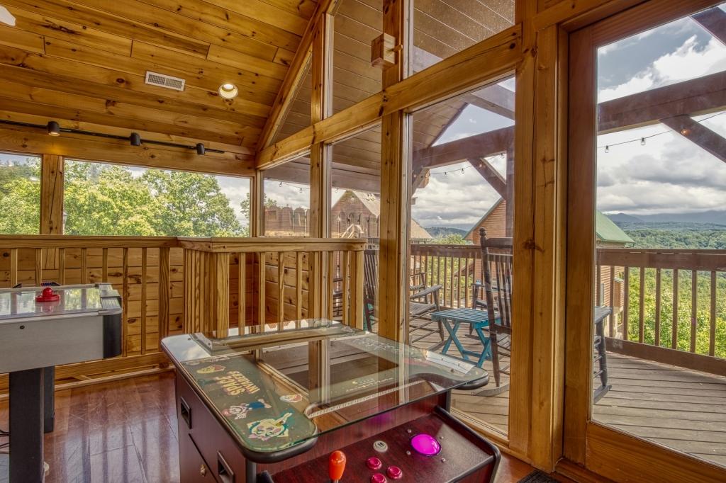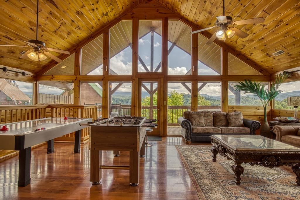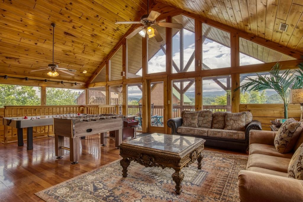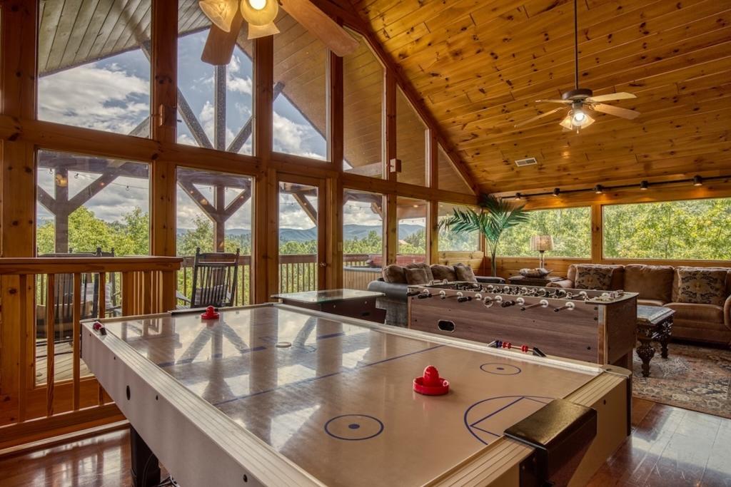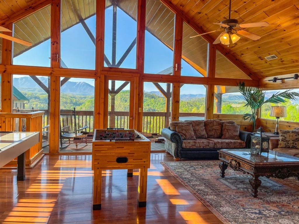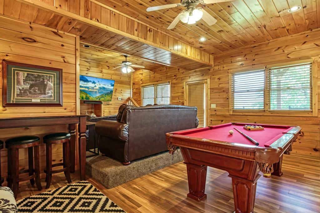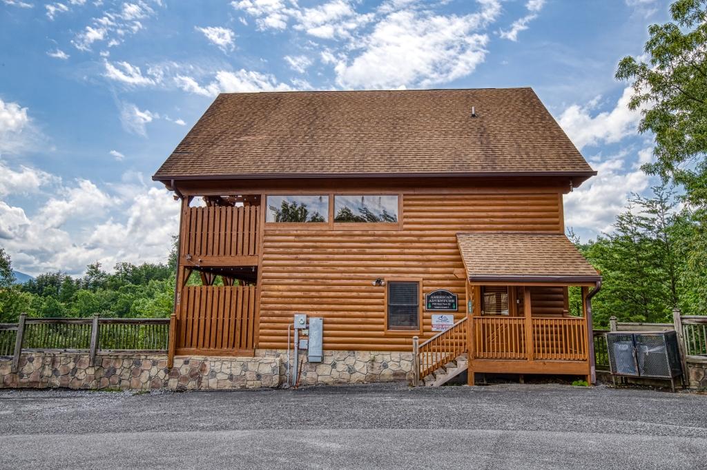 American Adventure, Beautiful Cabin rental in Sevierville has 3 bedrooms, 3 bathrooms, 10 sleeps, 1 minimum stay Cabin for rent in Sevierville Tennessee with the amenities and near by attractions , Air Conditioning, Balcony, Communal Pool, Fire extinguisher, Fireplace, Free WiFi, Game Room, Heating, Hot Tub, Internet, Kitchen, Linens Provided, Mountain View, Paper Towels, Parking, Pool Table, Smoke detector, Towels Provided, Washing Machine, Basic Soaps, Blender, Clothes Dryer, Coffee Maker , Dining Area, Dishes & Utensils, Dishwasher, Hair Dryer , Ice Maker, Iron & Board , Microwave, Outdoor Grill, Oven, Refrigerator, Stove, Television, Toaster, Toilet Paper, Golf, Health/beauty spa, Hiking, Mountain biking, Mountain climbing, Museums, Outlet shopping, Shopping, Theme parks, Water parks, Wildlife viewingfootball, Video Games, Smart TV, Jacuzzi, Family, Historic, Tourist Attractions, Emergency Exit Route, Requires Stairs , Cameras/Surveillance , Climbing/Play Structure