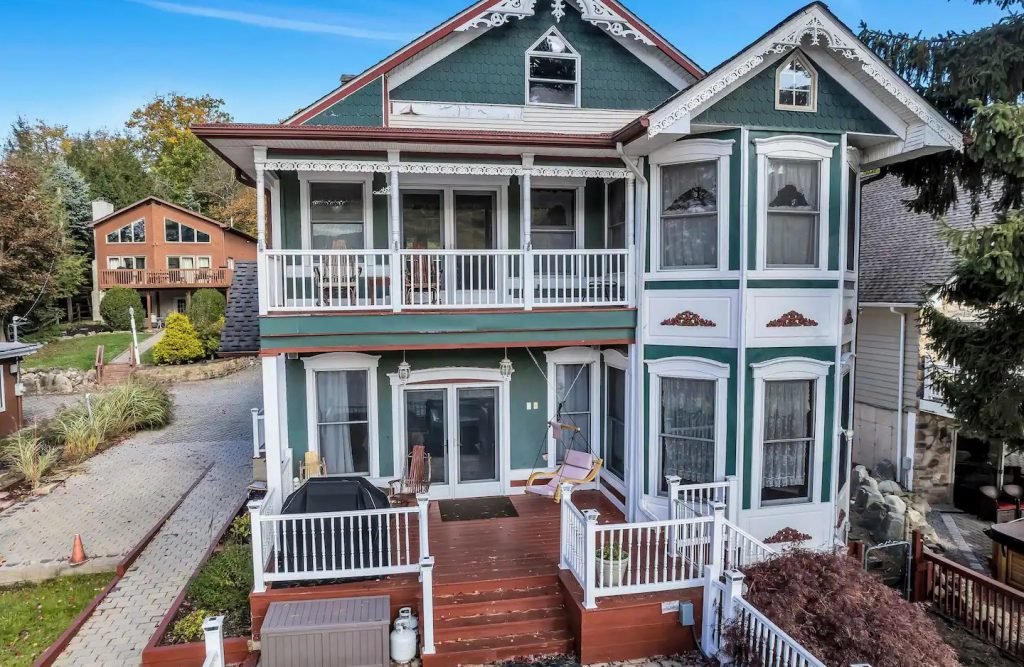Sunset Lake Lodge, Beautiful House rental in Lake Harmony has 7 bedrooms, 4 bathrooms, 23 sleeps, 1 minimum stay House for rent in Lake Harmony Pennsylvania with the amenities and near by attractions , Air Conditioning, Deck/Patio, Fireplace, Free WiFi, Game Room, Heating, Hot Tub, Kitchen, Parking, Pet Friendly, Pool Table, Blender, Cable/Satellite TV, Ceiling Fans, Coffee Maker , Dishwasher, Outdoor Grill, Oven, Refrigerator, Stove, Television, Toaster, Washer/Dryer Playstation, Skee-Ball, Ping Pong, Shuffleboard, Basketball Game, Pinball, Cornhole, Treadmill, 2 Workout Weight Stations, Stairmaster, Seating, Jacuzzi Bath Tub, Propane Fire Pit