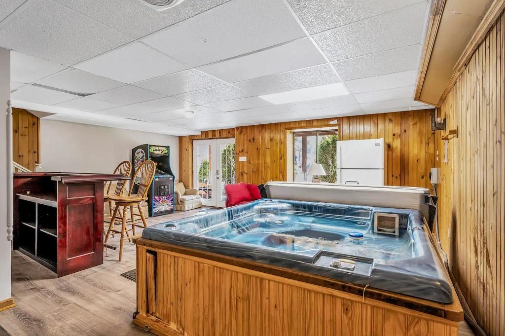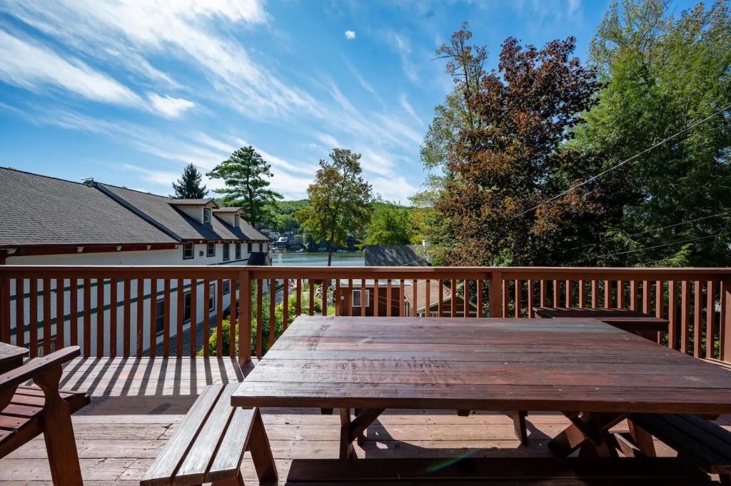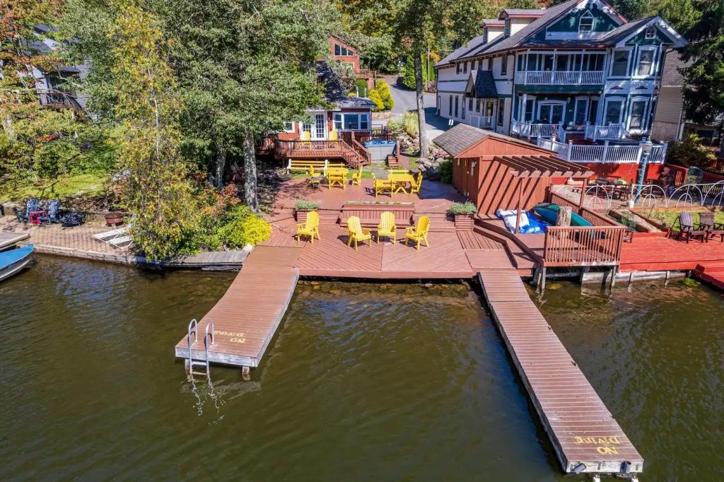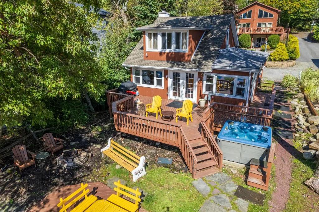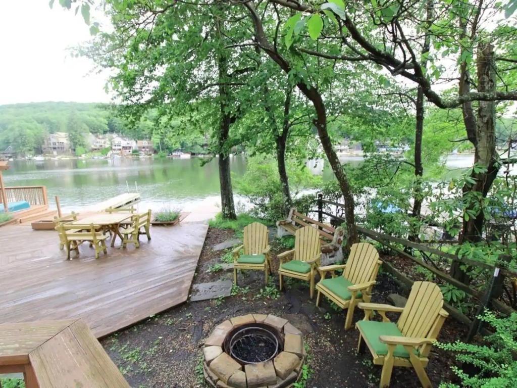Lakeside Oasis, Beautiful House rental in Lake Harmony has 8 bedrooms, 5 bathrooms, 24 sleeps, 1 minimum stay House for rent in Lake Harmony Pennsylvania with the amenities and near by attractions , Air Conditioning, Dock/Boat Slip, Fireplace, Heating, Hot Tub, Lake View, Lakefront, Pet Friendly, Pool Table, Blender, Ceiling Fans, Dishwasher, DVD Player, Microwave, Oven, Refrigerator, Stove, Television, Toaster, Washer/Dryer Stone Fire Pit, Stereo System, Decks, Dining Seats