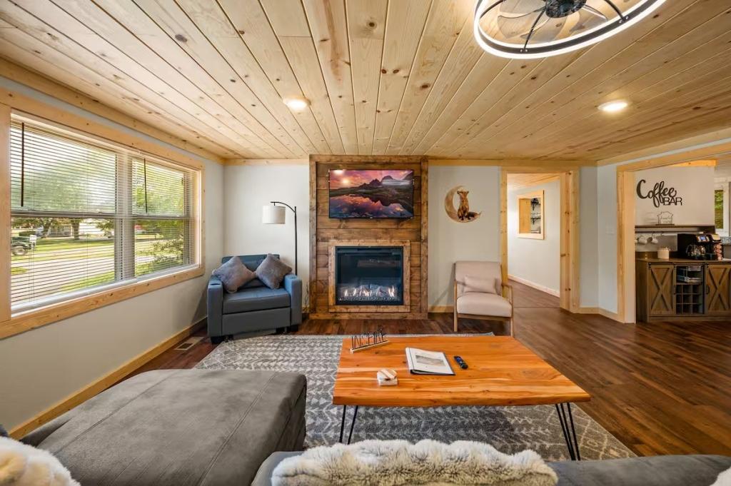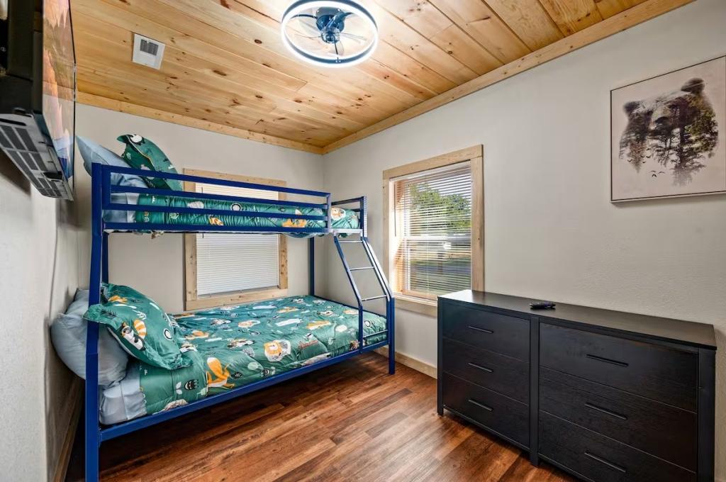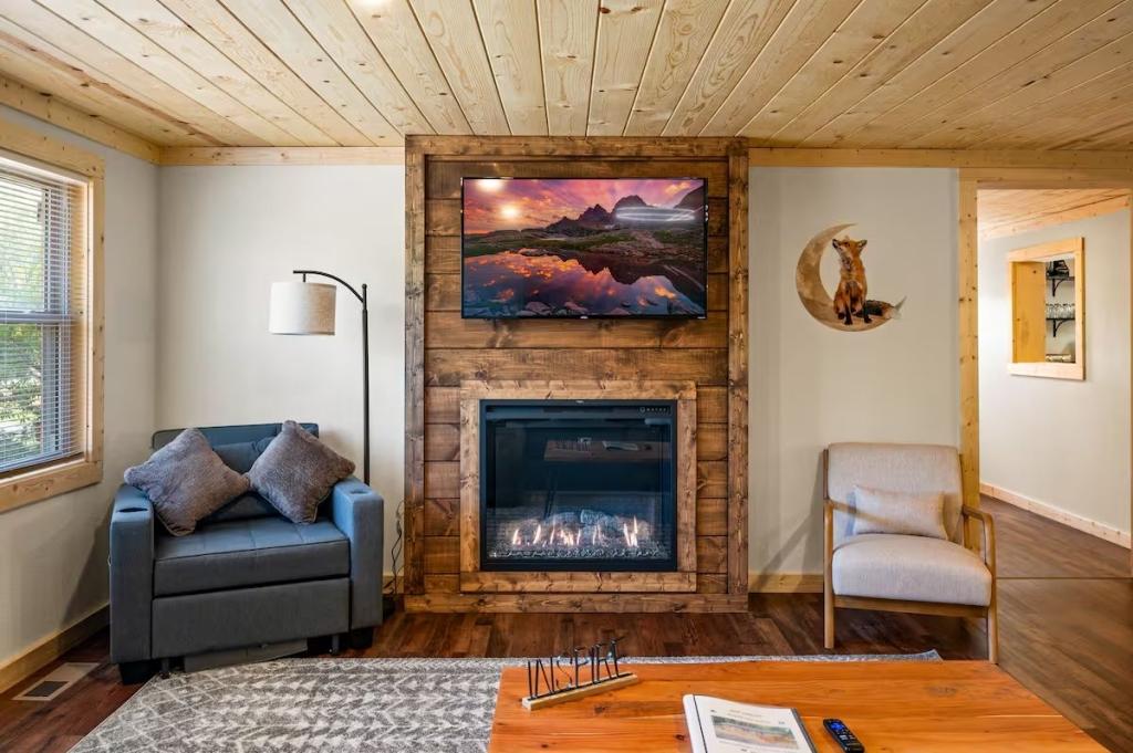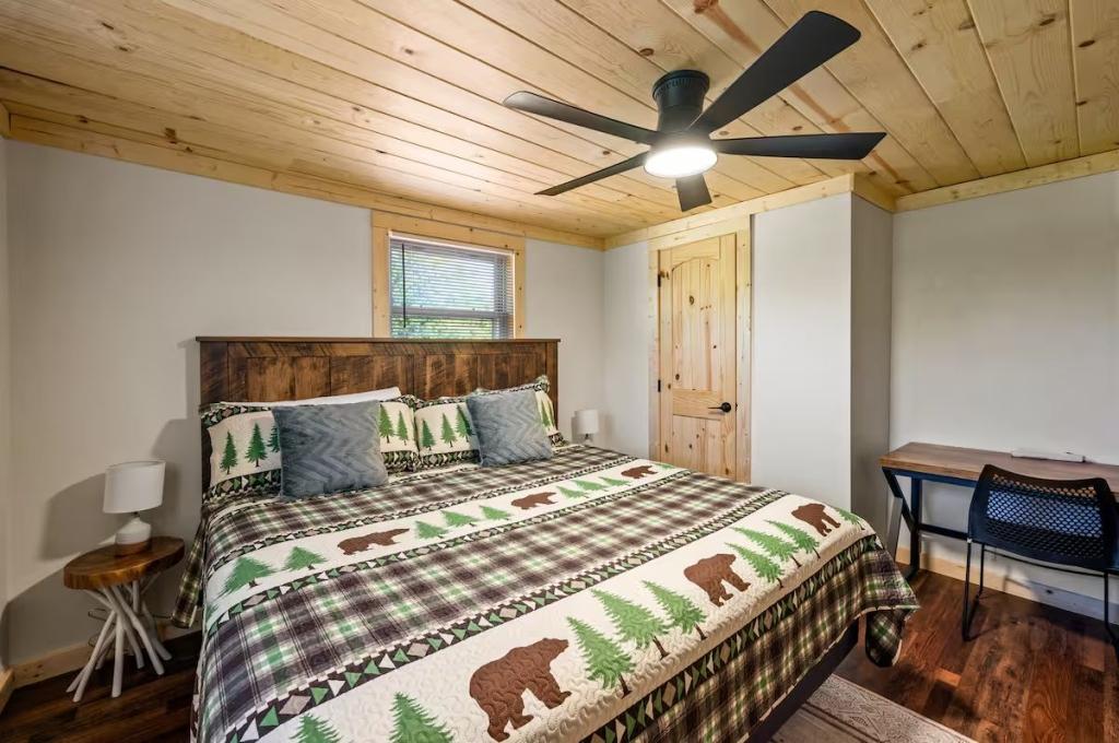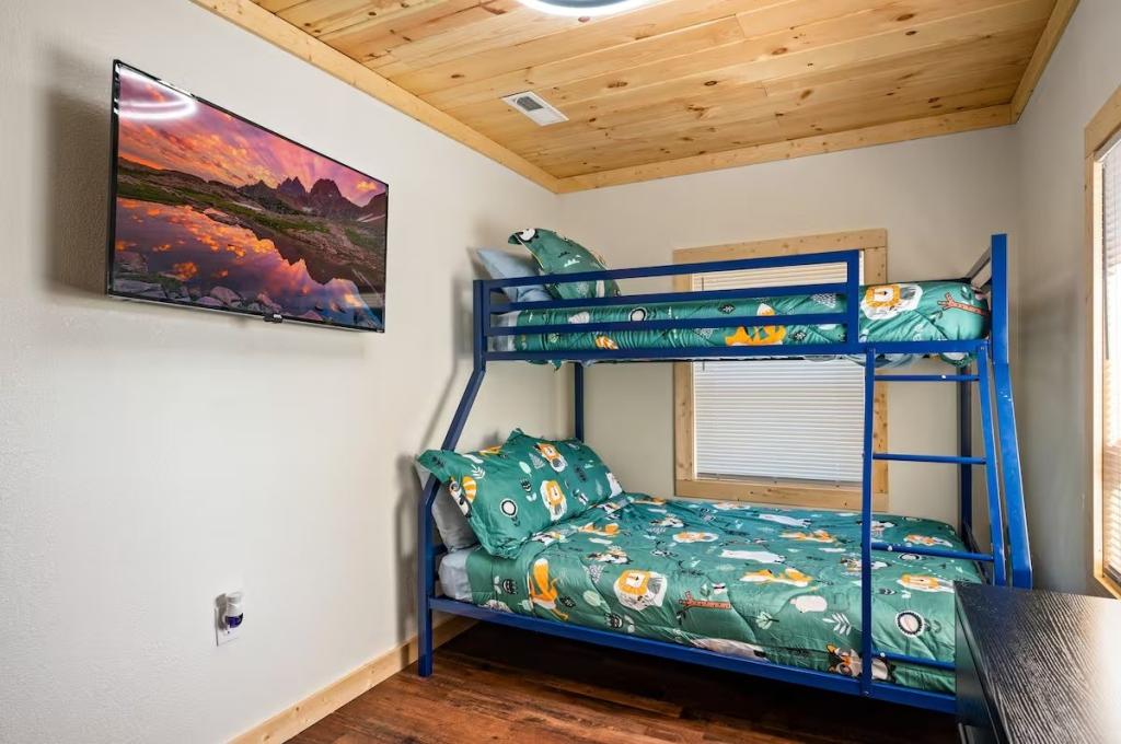 A+Location/HotTub/Theater/Playground/Arcade, Beautiful Cabin rental in Pigeon Forge has 3 bedrooms, 2 bathrooms, 7 sleeps, 1 minimum stay Cabin for rent in Pigeon Forge Tennessee with the amenities and near by attractions , Air Conditioning, Balcony, Carbon-monoxide detector, Deck/Patio, Fire extinguisher, Fireplace, Free WiFi, Heating, Hot Tub, Linens Provided, Parking, Pool Table, Smoke detector, Towels Provided, Washing Machine, Basic Soaps, Blender, Cable/Satellite TV, Ceiling Fans, Coffee Maker , Dining Area, Dishes & Utensils, Dishwasher, Hair Dryer , Hangers, Iron & Board , Microwave, Oven, Shampoo, Toaster, Washer/Dryer Hot water, Bath, Clothes storage: wardrobe, Arcade games, Cinema, Travel cot, Board games, Outdoor playground, Exterior security cameras on property, Dedicated workspace, Fridge, Cooking basics, Electric cooker, Wine glasses, Waste compactor, Private entrance, Private back garden, Firepit, Outdoor furniture, BBQ grill, Long-term stays allowed, Self check-in, Smart lock