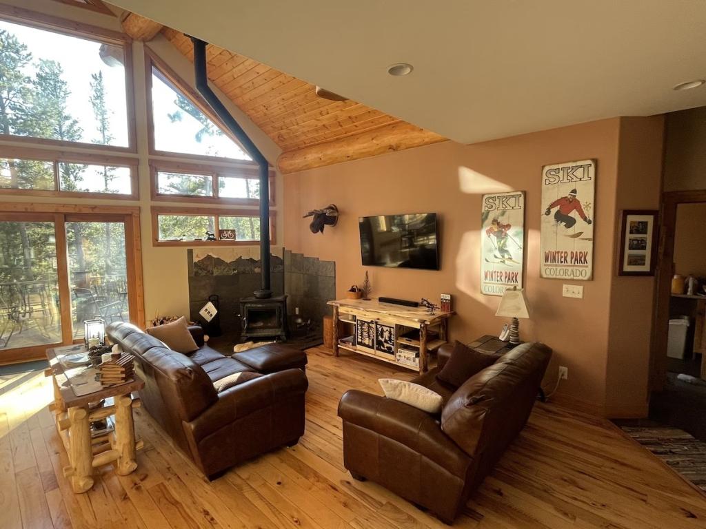 Fantastic Family “Treehouse”-Hot Tub10 Minutes to Winter Park, Beautiful House rental in Fraser has 4 bedrooms, 3.5 bathrooms, 10 sleeps, 4 minimum stay House for rent in Fraser Colorado with the amenities and near by attractions , Paper Towels, Deck/Patio, Fireplace, Free WiFi, Full Kitchen, Garage, Heating, Hot Tub, Internet, Linens Provided, Managed by Owner, No Pets Allowed, Parking, Ping Pong Table, Towels Provided, Wireless Internet, Washing Machine, Kitchen, Fire extinguisher, No Smoking, No parties/events, Smoke detector, Carbon-monoxide detector, Exterior lighting, Mountain View, Carbon monoxide detector, Blender, Microwave, Telephone, Cable/Satellite TV, DVD Player, Outdoor Grill, Television, Ceiling Fans, Freezer, Oven, Toaster, Coffee Maker , Hair Dryer , Refrigerator, Washer/Dryer , Dishes & Utensils, Iron & Board , Stove, Dishwasher, Coffee Grinder, Heater, Clothes Dryer, Ice Maker, Dining Area, Basic Soaps, Toilet Paper, Living Room, Shampoo, Hangers, Microwave/Air Fryer, Ironing Board, Waffle Iron, Swimming, Fishing, Bird watching, Horseback riding, Paddle boating, Sledding, Cross country skiing, Cycling, Golf, Hiking, Mountain biking, Mountain climbing, Rafting, Rock climbing, Skiing, Snowboarding, Snowmobiling, Water skiing, Hospital, fitness centerWifi speed: 100+ Mbps, Wood stove, Grill, Kitchen island, Dining table, Lobster pot, Spa whirlpool, Sauna, Fire pit, Outdoor furniture, Water sports gear, Ski & snowboard, Games, Books, Smart TV, Video library, Games for kids, Dishes & utensils for kids, Dryer, First aid kit, Deadbolt lock, Mountain, Resort, Minimum age limit for renters