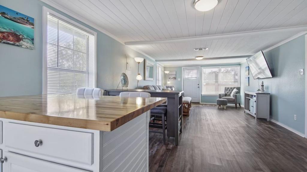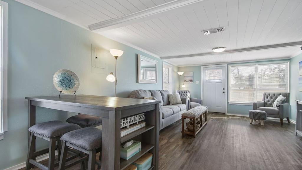 Renovated house in Eastern Panama City, near Tyndall Air Force Base & PCB, Beautiful House rental in Florida Panhandle has 2 bedrooms, 1 bathrooms, 4 sleeps, 1 minimum stay House for rent in Florida Panhandle Florida with the amenities and near by attractions , Air Conditioning, Beach Chairs, Paper Towels, Beach View, Deck/Patio, Free WiFi, Full Kitchen, Heating, Hot Tub, Internet, Kid Friendly, Linens Provided, Managed by Owner, Non-Smoking, Ocean View, Oceanfront, Parking, Pet Friendly, Porch / Veranda, Towels Provided, Washing Machine, Kitchen, Children Welcome, Fire extinguisher, Children allowed, No Smoking, Smoke detector, Carbon-monoxide detector, Exterior lighting, Carbon monoxide detector, Microwave, Cable/Satellite TV, DVD Player, Outdoor Grill, Television, Ceiling Fans, Freezer, Oven, Toaster, Coffee Maker , Hair Dryer , Refrigerator, Washer/Dryer , Dishes & Utensils, Iron & Board , Stove, Dishwasher, First-aid kit, Clothes Dryer, Basic Soaps, Toilet Paper, Living Room, Shampoo, Hangers, Microwave/Air Fryer, Ironing Board, Swimming, Fishing, Surfing, Water sports, Boating, Museums, Water parks, Bay/sound, Antiquing, Shopping, Wildlife viewing, Cycling, Golf, Jet skiing, Kayaking, Parasailing, Scuba diving or snorkeling, Snorkeling, Wind-surfing, HospitalDesk, Desk chair, Dining table, Lobster pot, Outdoor fireplace, Outdoor furniture, Games, Books, Smart TV, Video library, Children's games, Children's plates and utensils, Toys, Children's books, Fenced yard, Not wheelchair accessible, City center, strait, Marina, Housekeeping service (surcharge), Accepts long-term stays, Minimum age for tenants 21 One dog under 50 pounds is permitted for an additional nightly fee.