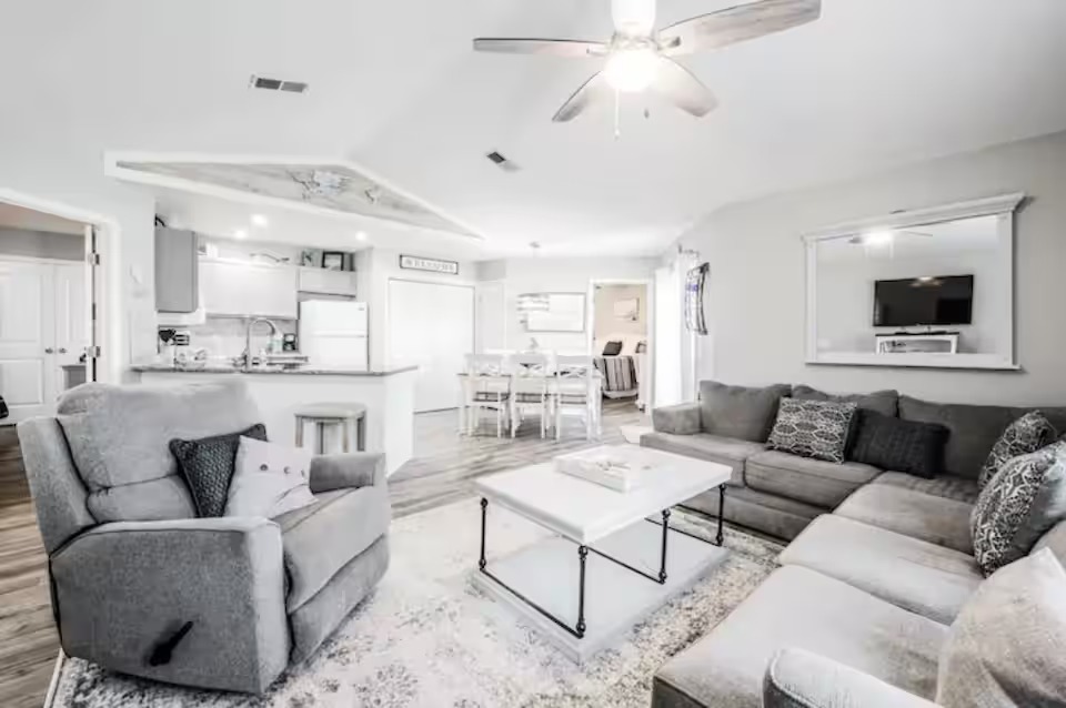 Southern Paradise at Colony Club, Beautiful Condo rental in Gulf Shores has 2 bedrooms, 2 bathrooms, 5 sleeps, 1 minimum stay Condo for rent in Gulf Shores Alabama with the amenities and near by attractions , Air Conditioning, Balcony, Carbon monoxide detector, Deck/Patio, Fire extinguisher, Kitchen, Smoke detector, Towels Provided, Basic Soaps, Cable/Satellite TV, Coffee Maker , Dishwasher, Hair Dryer , Hangers, Iron & Board , Microwave, Toaster, Toilet Paper, Washer/Dryer Courtyard view, Cleaning products, Hot water, bed sheets, Bed linen, Clothes storage: wardrobe and chest of drawers, Exercise equipment: elliptical- free weights- stationary bike- treadmill, Central air conditioning, Central heating, Fast wifi – 299 Mbps, Dedicated workspace, Fridge, Cooking basics(Pots and pans- oil- salt and pepper), Dishes and cutlery(Bowls- chopsticks- plates- cups- etc.), Electric cooker, Single oven, Coffee maker: filter coffee maker- Keurig coffee machine, Wine glasses, Baking sheet, Dining table, Private entrance, BBQ grill: charcoal, Long-term stays allowed (Allow stays of 28 days or more)