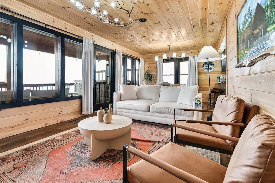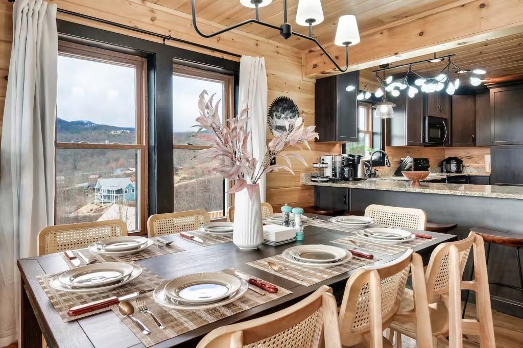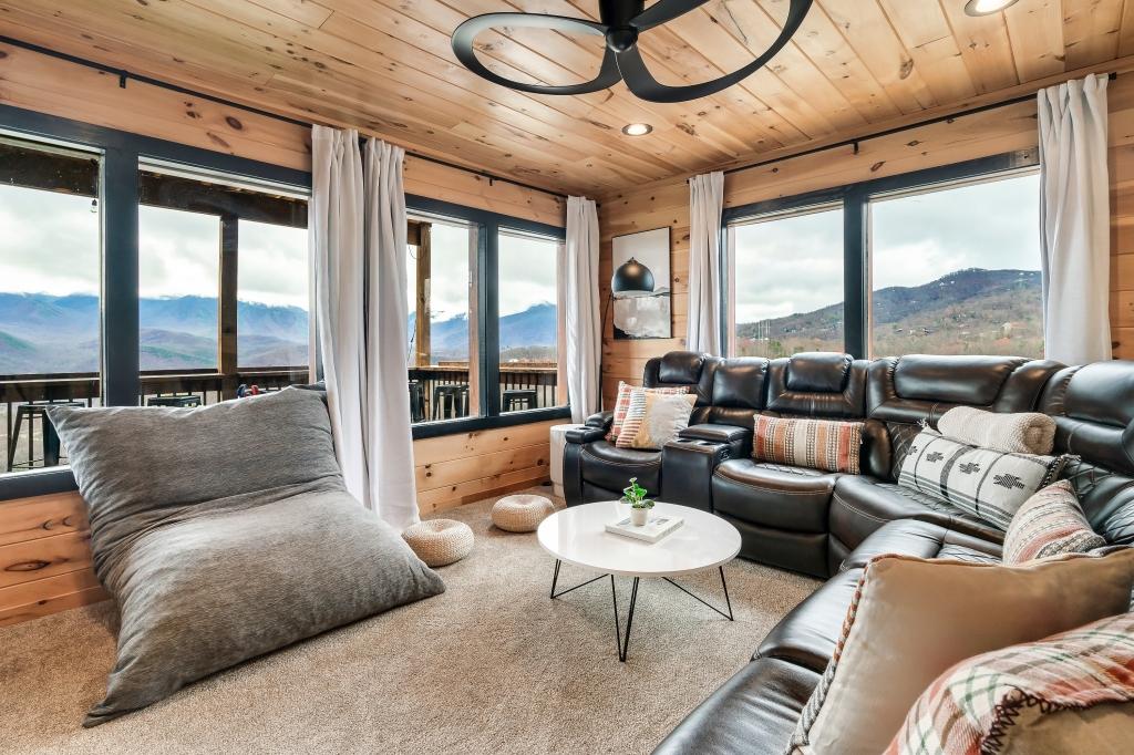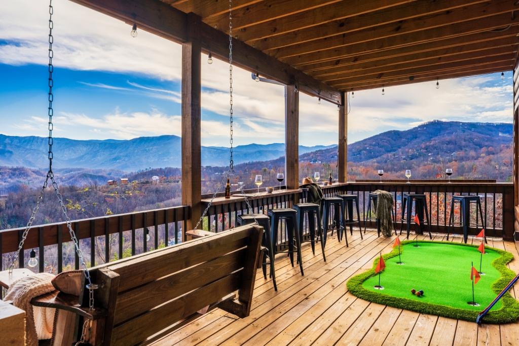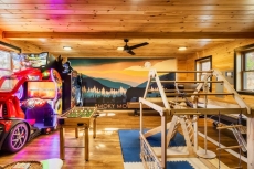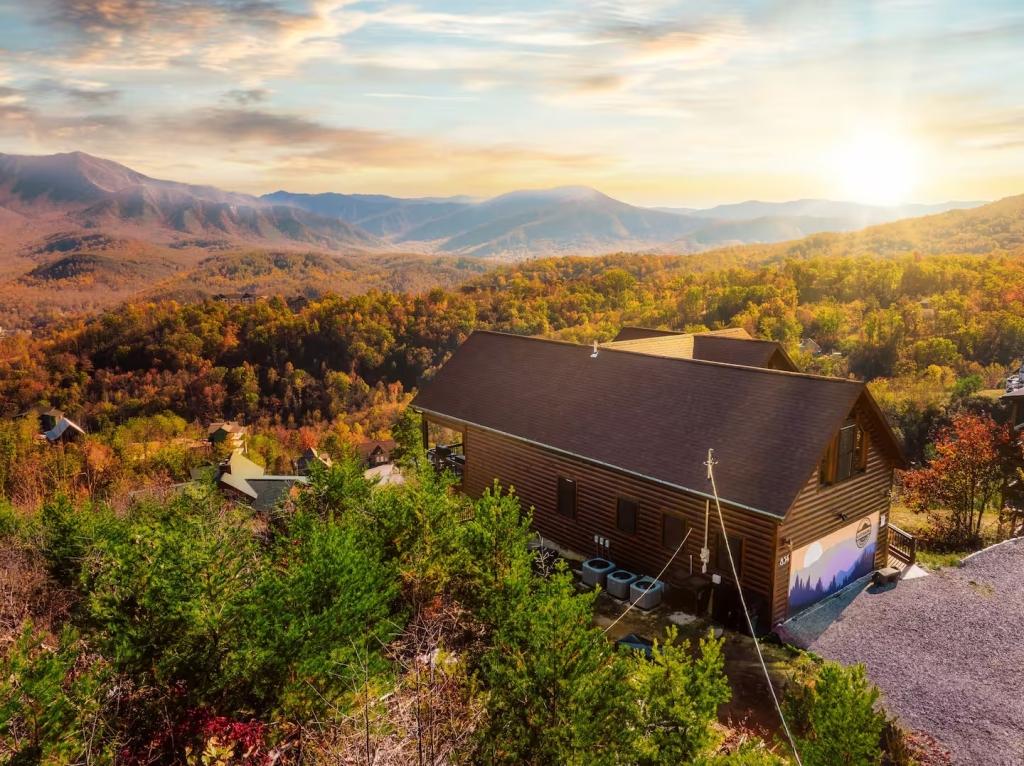 Mountain View|Game| Hot Tub | Grill |Firepit|Sauna, Beautiful Cabin rental in Gatlinburg has 6 bedrooms, 6 bathrooms, 25 sleeps, 1 minimum stay Cabin for rent in Gatlinburg Tennessee with the amenities and near by attractions , Air Conditioning, Balcony, Deck/Patio, Fireplace, Free WiFi, Heating, Hot Tub, Parking, Pet Friendly, Towels Provided, Kitchen, Fire extinguisher, Smoke detector, Mountain View, Carbon monoxide detector, Blender, Microwave, Television, Ceiling Fans, Freezer, Oven, Toaster, Coffee Maker , Hair Dryer , Refrigerator, Washer/Dryer , Iron & Board , Stove, Dishwasher, First-aid kit, Basic Soaps, Toilet Paper, Kettle, HangersBathtub, Cleaning products, Conditioner, Body Wash, Shampoo, Hot water, Free washer – In unit, Free dryer – In unit, bed sheets, Bed linens, Extra pillows and blankets, Clothing storage: walk-in closet- closet- wardrobe and dresser, 65-inch HDTV with Roku, Keyboard/Piano, Arcade games, Home theatre, Mini golf, Pack-n play/Travel crib – always at the listing, Folding or convertible high chair – always at the listing, Children’s dinnerware, Outlet covers, Children's playroom, Central air conditioning, Indoor fireplace: electric, Ceiling fan, Central heating, Exterior security cameras on property, Dedicated workspace, Cooking basics, Dishes and silverware, Mini fridge, Stainless steel electric stove, Stainless steel oven, Hot water kettle, Wine glasses, Baking sheet, Rice cooker, Barbecue utensils, Dining table, Coffee, Fire pit, Outdoor furniture, Outdoor dining area, BBQ grill, Free driveway parking on premises – 7 spaces, Shared outdoor pool, Private hot tub, Private sauna